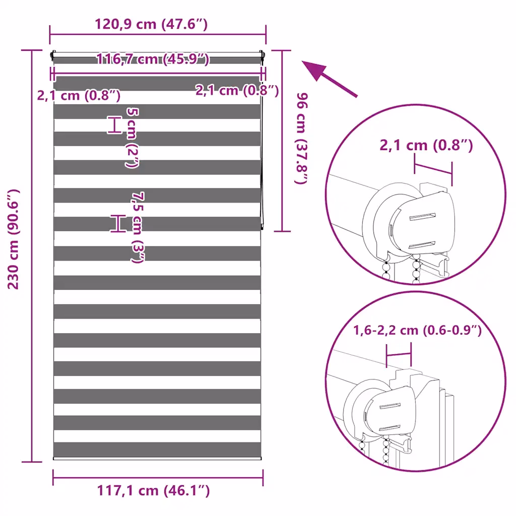 - Suurus 120 x 230 cm – sobib standardsetele akendele, kus on vaja katta nii aken kui ka osa aknaalusest seinast.