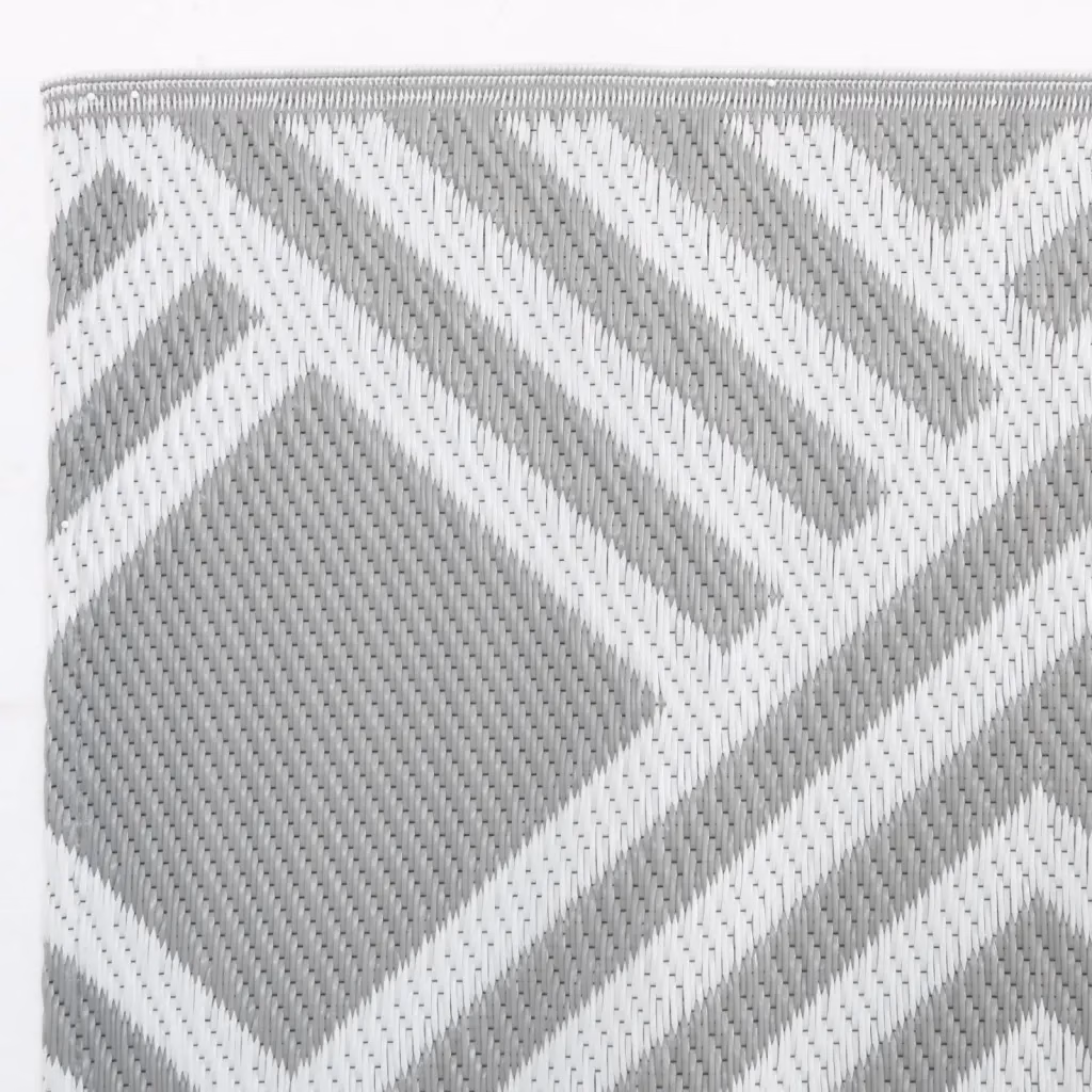 Hall õuevaip ARAKIL suurusega 80 x 150 cm on mõeldud terrassile, verandale, rõdule või aeda, et muuta väli- ja siseruumid kodusemaks ja kaitsta põrandapinda. Tihedalt kootud polüpropüleenist (PP) jacquard-mustriga vaip on samal ajal kerge, vastupidav ja vähese hooldusvajadusega.
