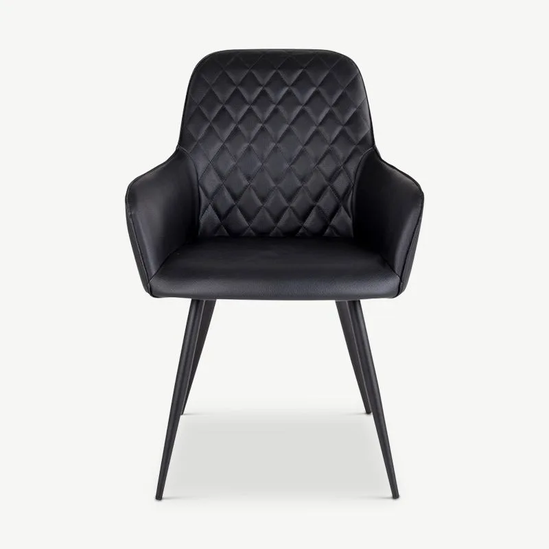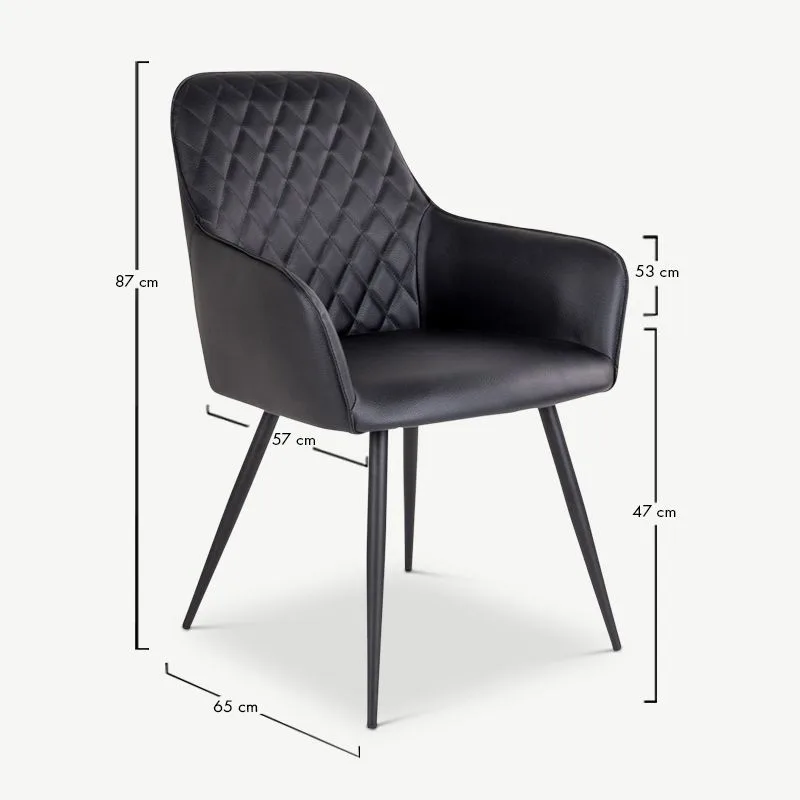 Selle söögitooli pehmendusega istumisosa on kaetud kvaliteetse musta PU-nahaga, mis on vastupidav ja kergesti hooldatav. Tänu käetugedele ja ergonoomilisele seljatoele pakub tool suurepärast istumismugavust ka pikemate õhtusöökide ajal.