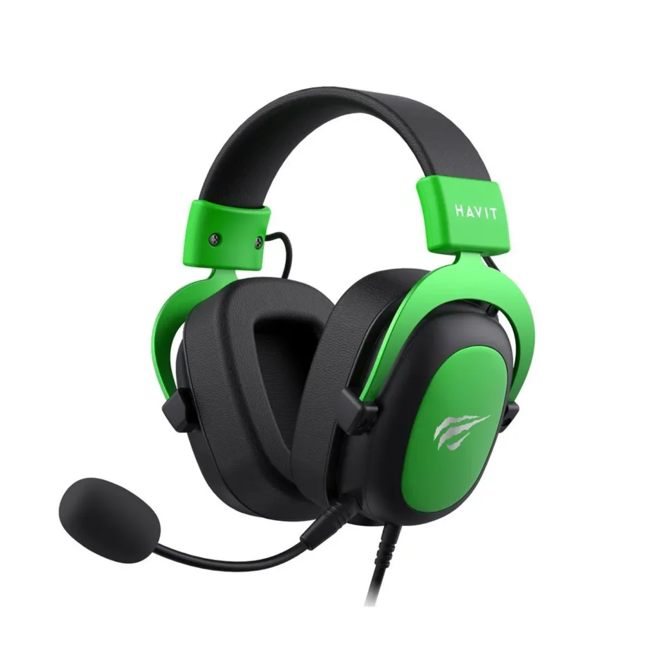 Havit H2002d on must-roheline juhtmega mänguripeakomplekt eemaldatava mikrofoniga, mis pakub mugavust ja selget heli pikematel mängusessioonidel.