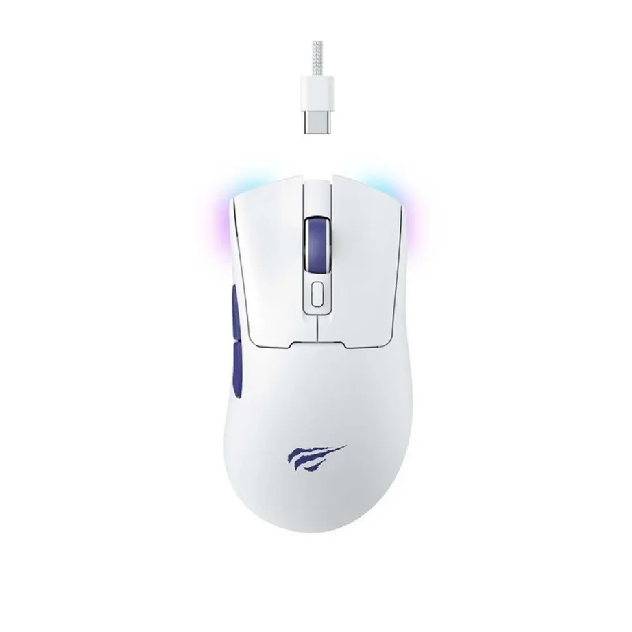 Havit MS966WB on valge, kerge juhtmevaba mängurihiir, millel on 7 nuppu, 10 000 DPI optiline sensor ning USB Type-C laadimine ja mitmekesised ühendusvõimalused.