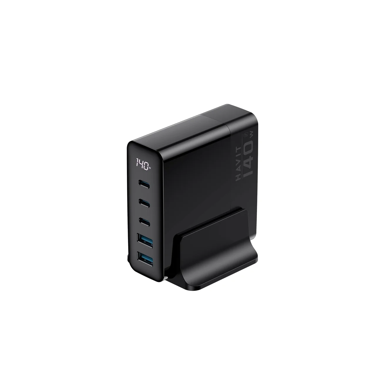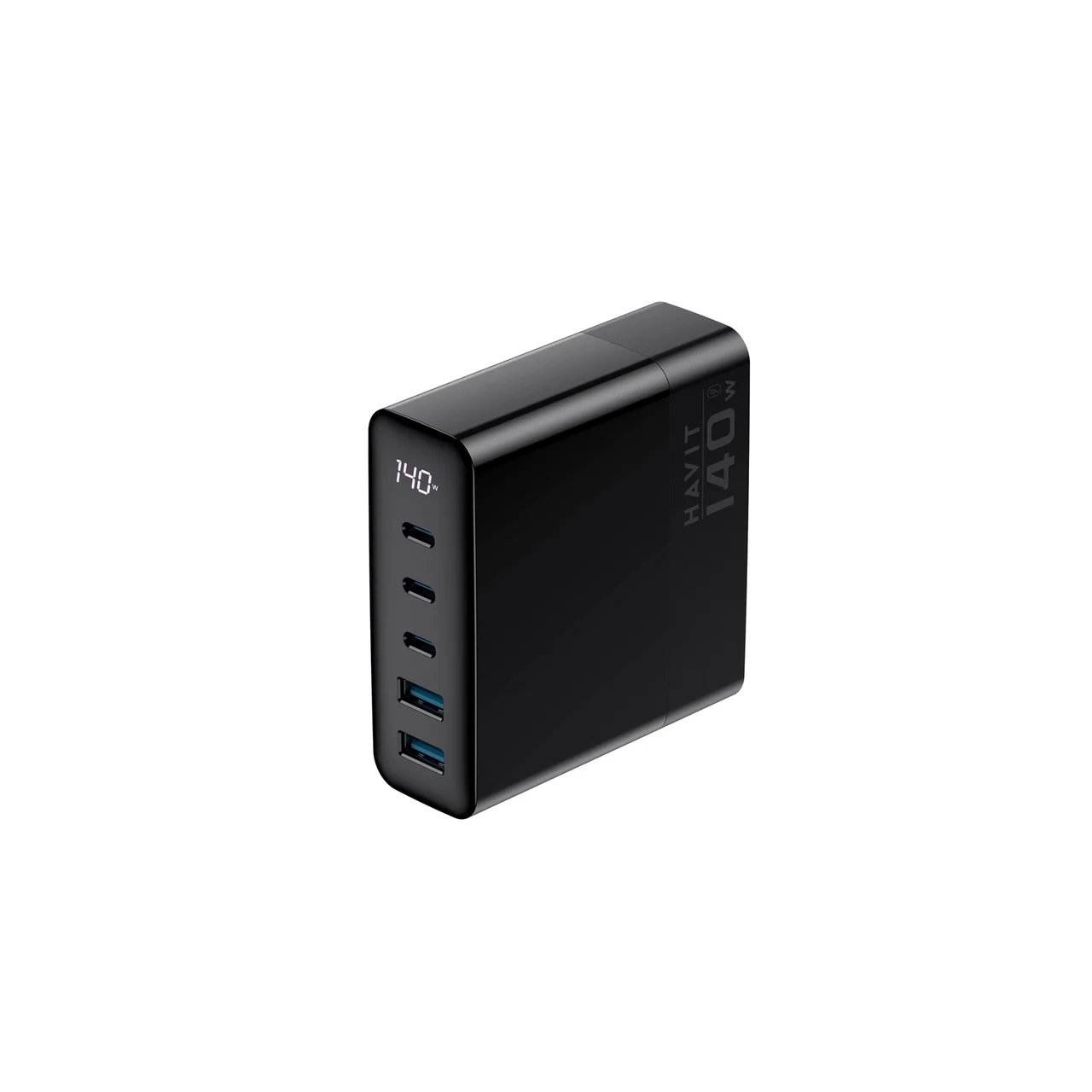 Havit UCLE004 EU must GaN reisilaadija 140 W – tõhus laadimine viie seadmega samaaegselt