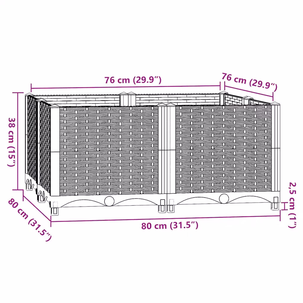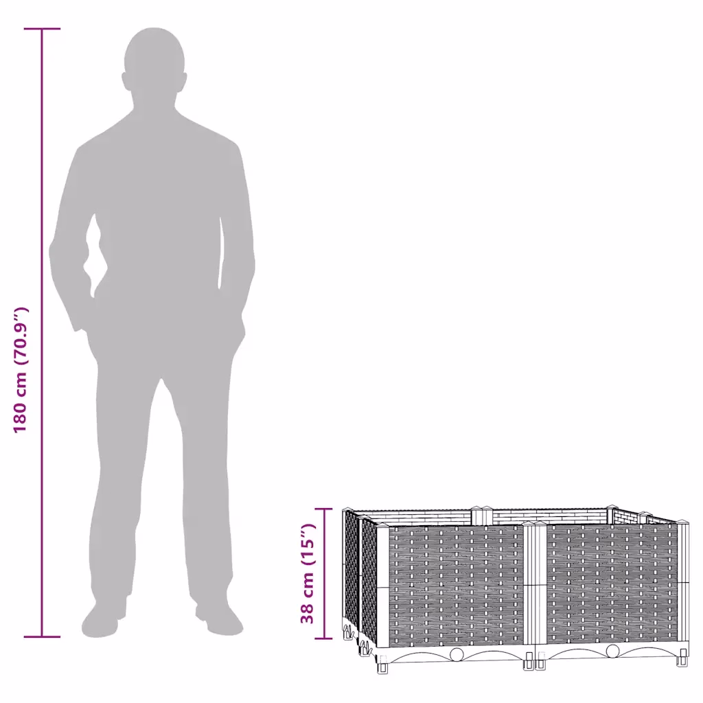 - Rohkelt ruumi taimedele tänu 80 x 80 x 38 cm mõõtmetele, mis võimaldavad mahutada palju mulda ja mitmeid taimi korraga.