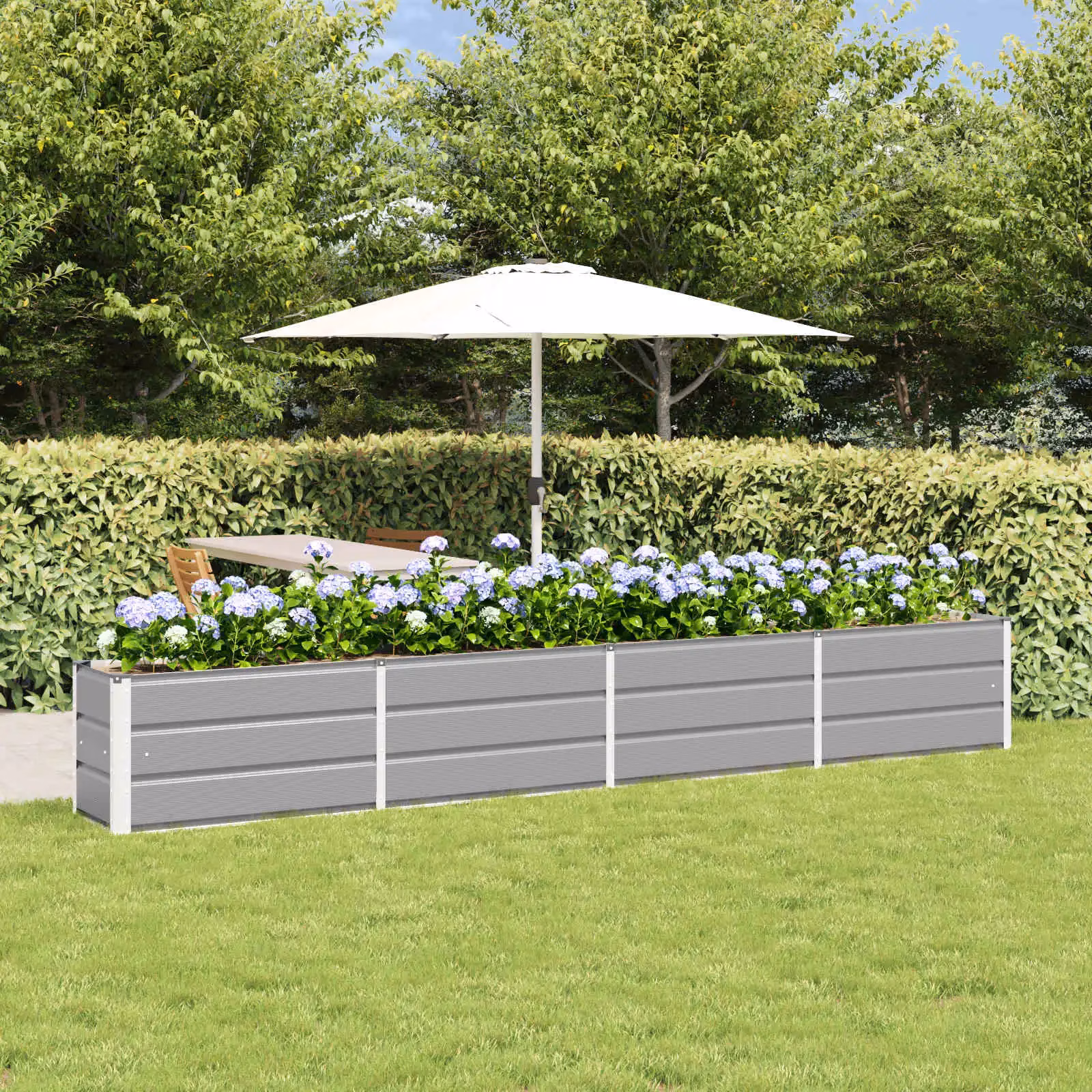 Helehall terasest taimekast pakub praktilist ja esteetilist lahendust lillede, maitsetaimede või dekoratiivtaimede istutamiseks. Pikkus 320 cm loob suure istutusala, millega saab rõhutada terrassi serva, raamida istumisala või kujundada selgeid peenraviire. Vastupidavast terasest konstruktsioon sobib kasutamiseks välitingimustes, aidates hoida aia ilme korrastatuna ja ühtlasena.