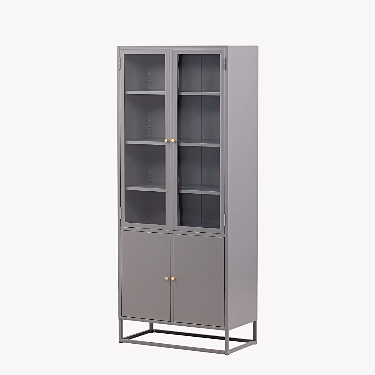 Bakal helehall terasest vitriinkapp on kõrge ja elegantne hoiulahendus, mis ühendab nutikalt avatud ja suletud panipaigad. Ülemiste klaasuste taga saad esitleda oma lemmiknõusid, klaase, dekoratsioone või raamatuid, alumiste täisuste taha aga peita kõik, mida Sa igapäevaselt silme ees hoida ei soovi. Helehall viimistlus lisab interjööri rahuliku ja põhjamaise ilme, mis sobitub hästi nii kaasaegsesse elutuppa, funktsionaalsesse kööki kui ka minimalistlikku tööruumi.