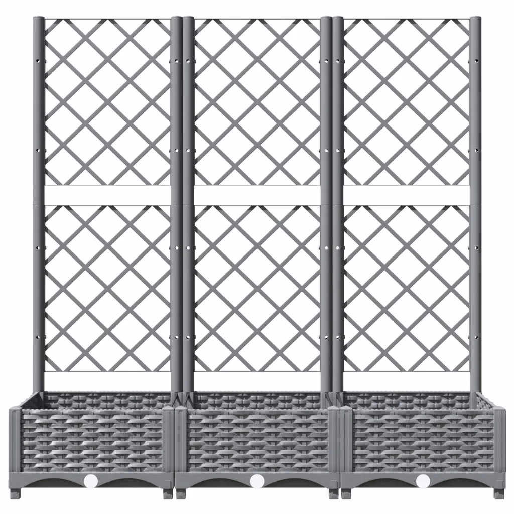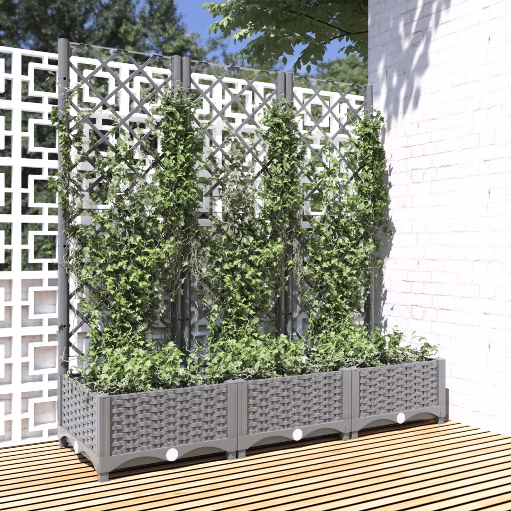 Kui soovite luua kompaktsel pinnal rohkem rohelust ja saada tuge ronitaimede kasvatamiseks, on see helehall polüpropüleenist kast koos võrega praktiline lahendus. Tänu mõõtmetele 120 x 40 x 121,5 cm pakub see piisavalt ruumi taimedele ning sobib hästi nii väiksematesse kui ka suurematesse väliruumidesse.