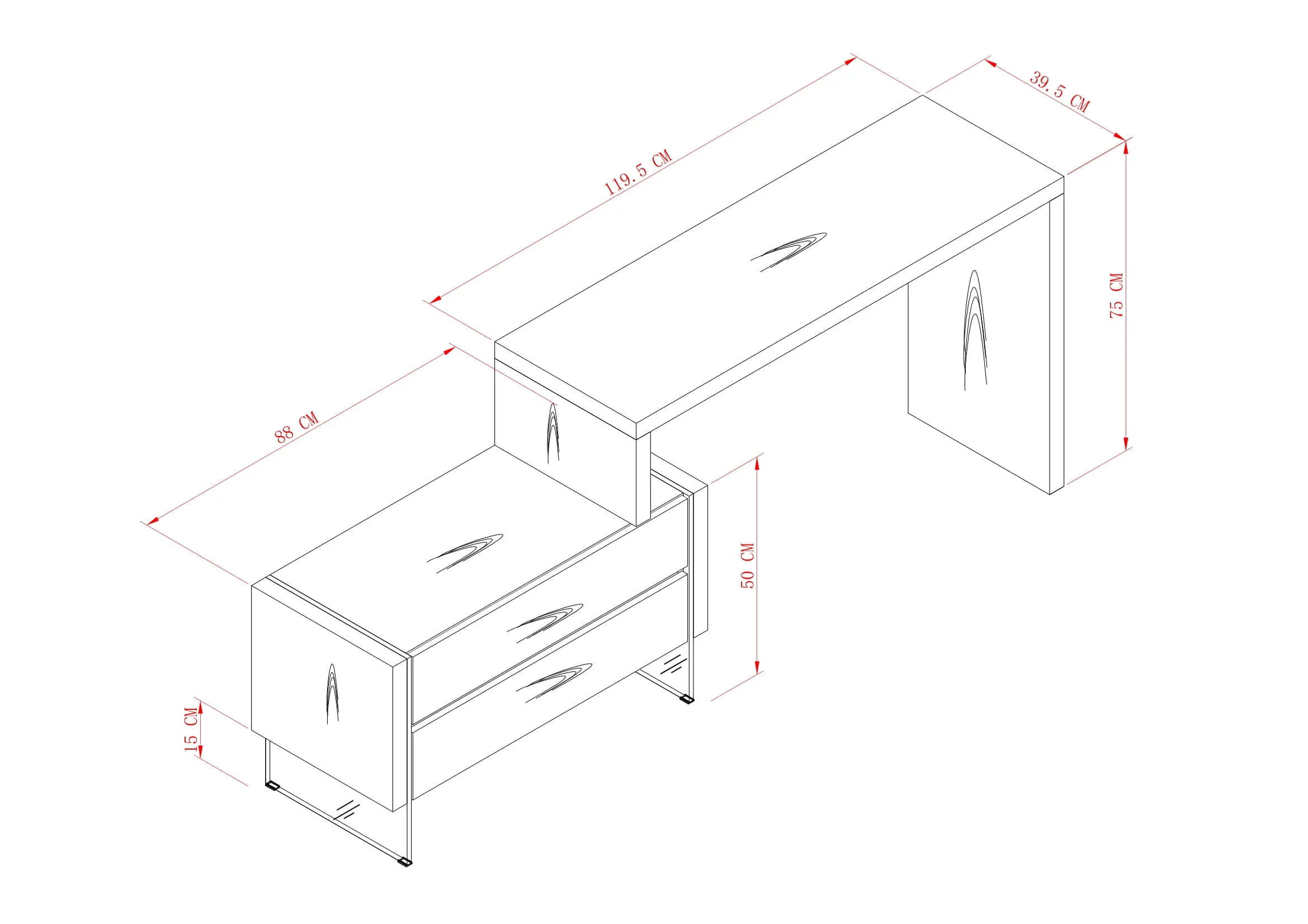 Mõõtmed: Laius: 88+119,5 cm, Sügavus: 39,5 cm, Kõrgus: 75 cm.