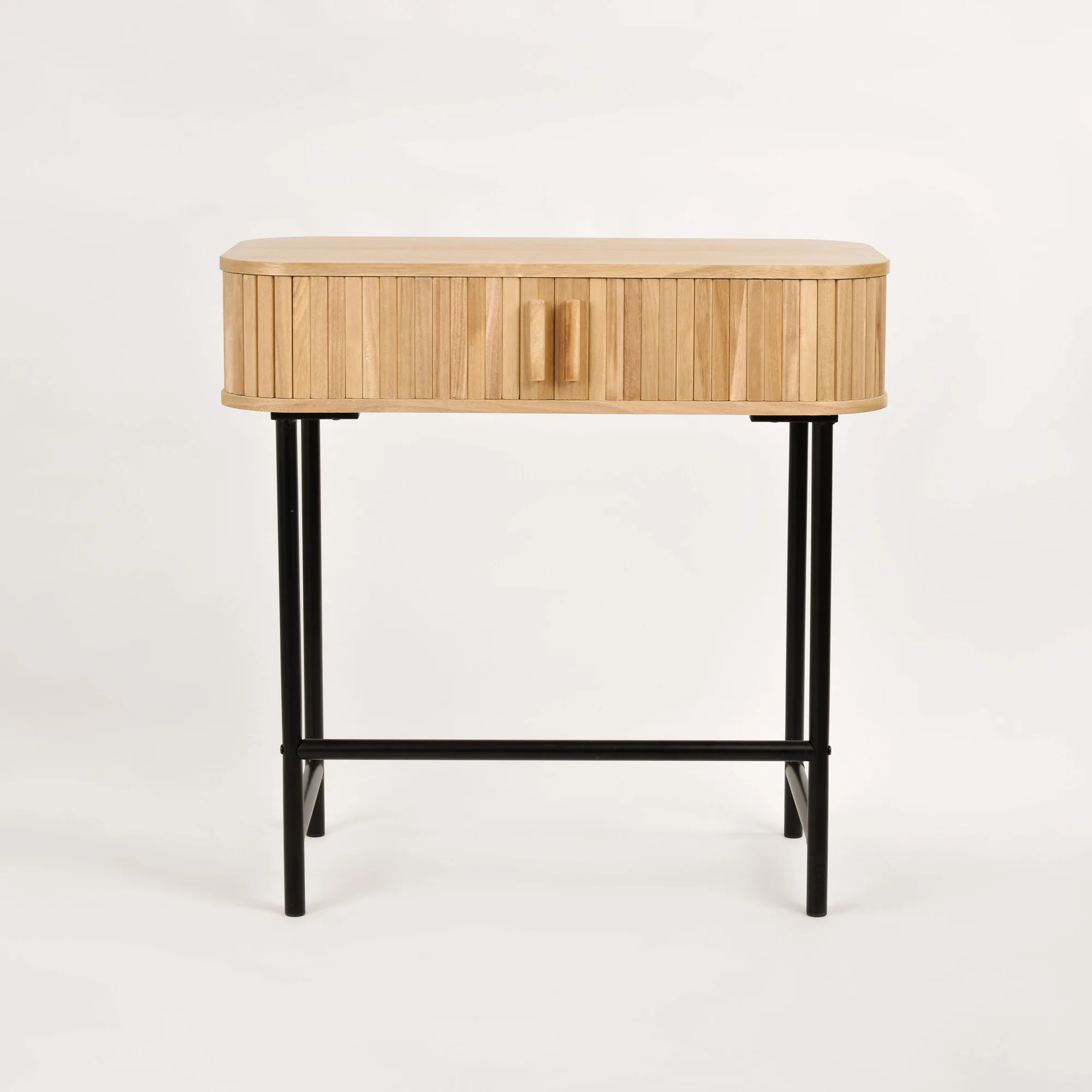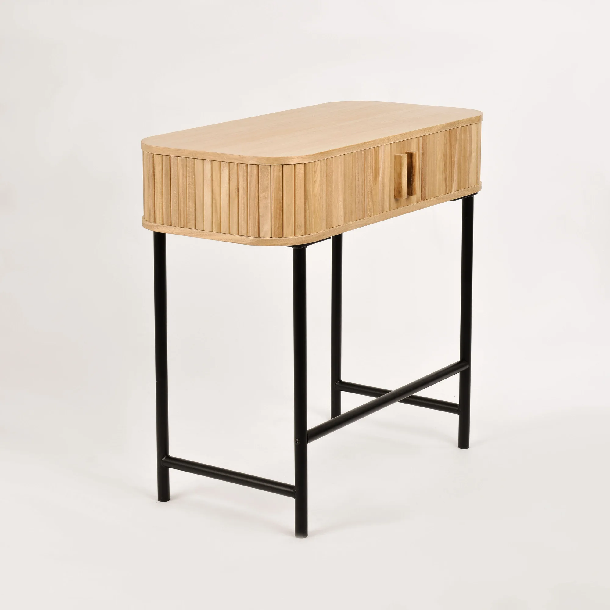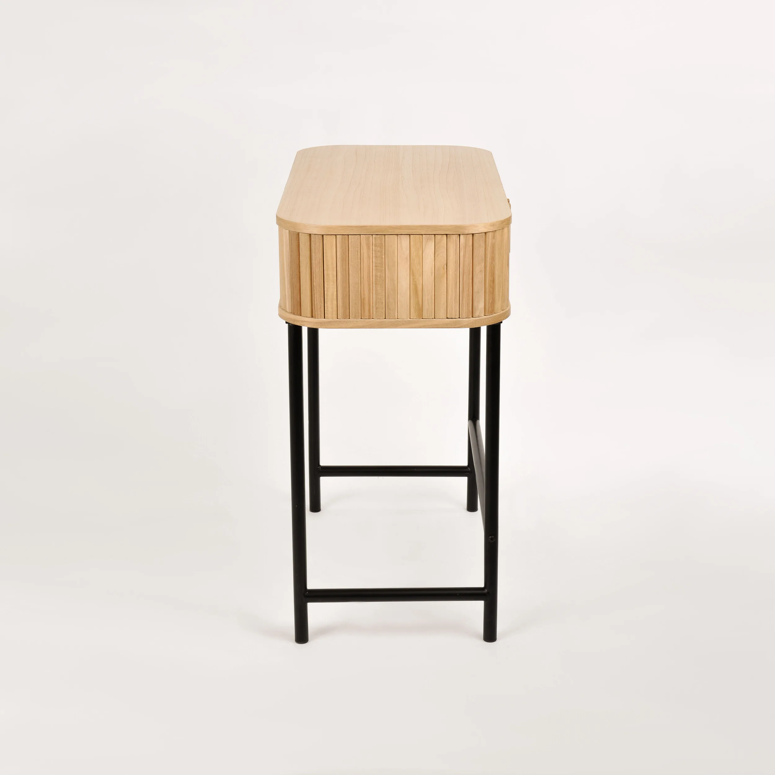 Florence FL03 konsoollaud on valmistatud kvaliteetsest Paulownia puidust ja MDF-st, pakkudes vastupidavust ja elegantset välimust. Mustad metalljalad annavad lauale kindla aluse ja stiilse kontrasti. Liuguksed võimaldavad hõlpsat ligipääsu laua sisemusse, kus saate hoida vajalikke esemeid käepärast. Osaliselt kokkupandud disain muudab paigaldamise lihtsaks ja mugavaks.