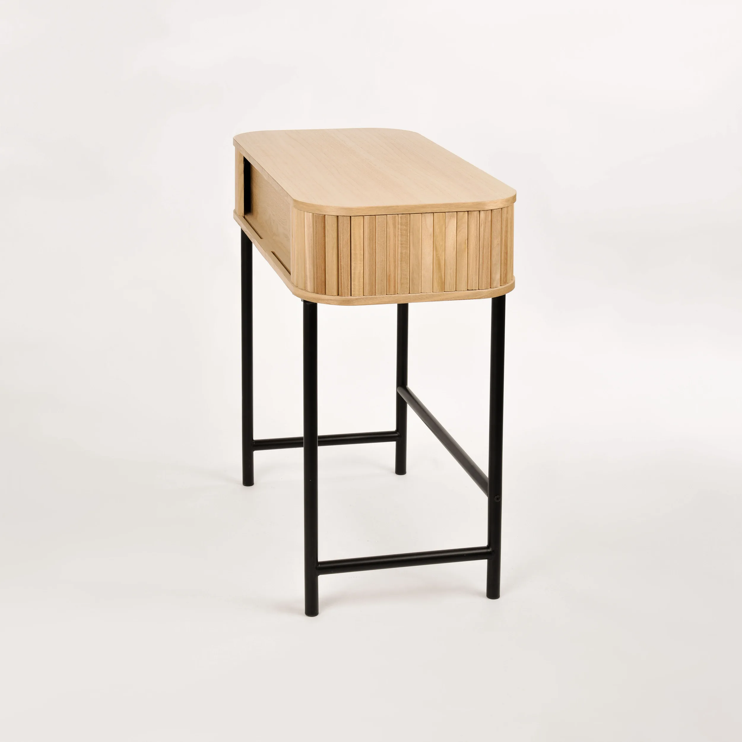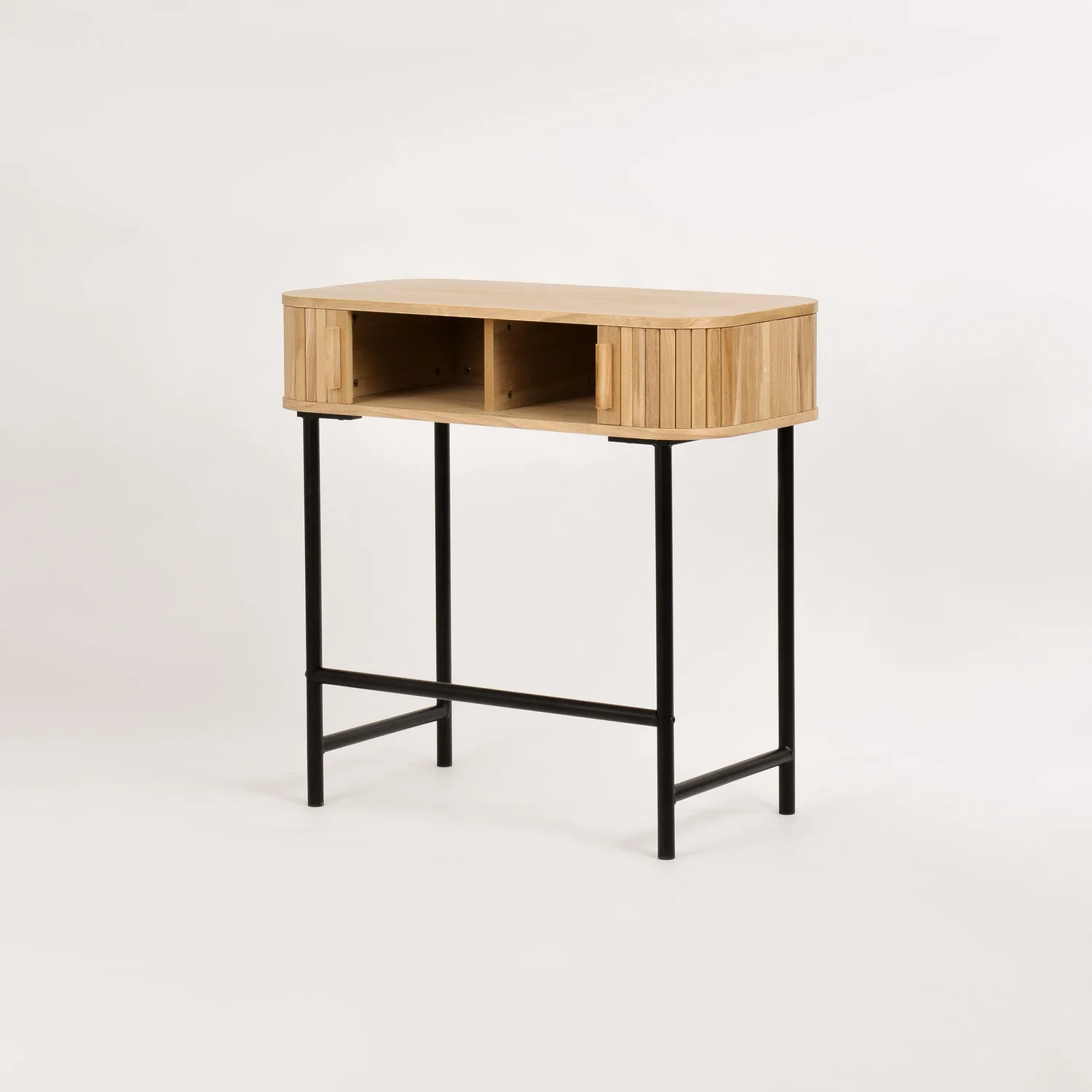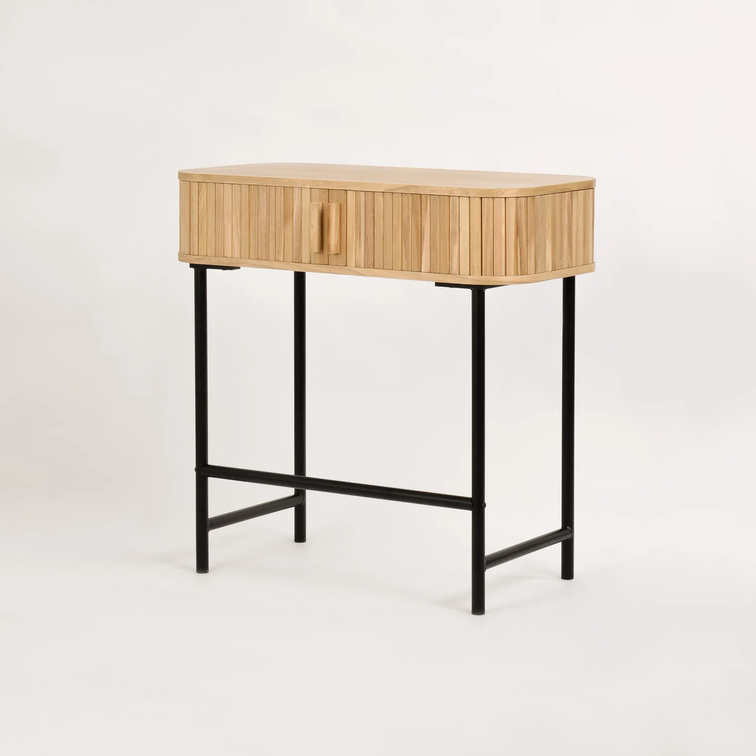 Florence FL03 konsoollaud on valmistatud kvaliteetsest Paulownia puidust ja MDF-st, pakkudes vastupidavust ja elegantset välimust. Mustad metalljalad annavad lauale kindla aluse ja stiilse kontrasti. Liuguksed võimaldavad hõlpsat ligipääsu laua sisemusse, kus saate hoida vajalikke esemeid käepärast. Osaliselt kokkupandud disain muudab paigaldamise lihtsaks ja mugavaks.