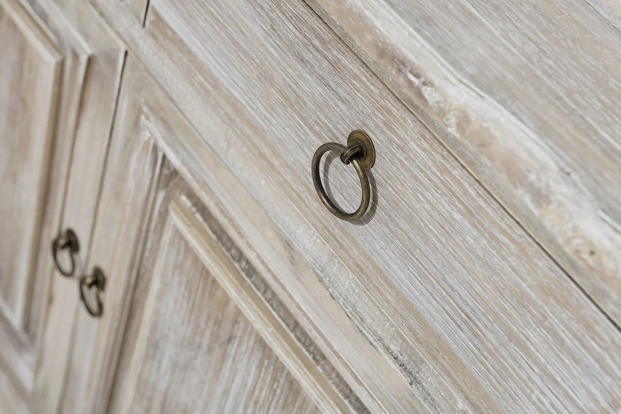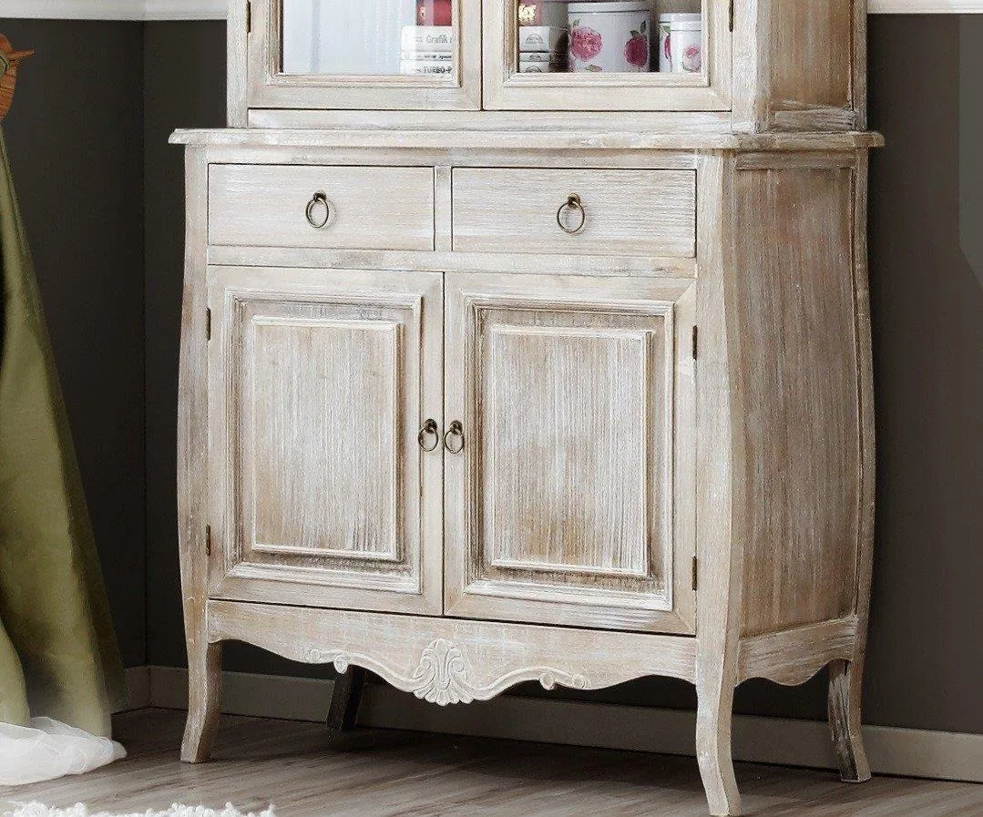 Merano ME01 vitriinkapp pakub rohkelt hoiustamisvõimalusi, olles varustatud nelja ukse ja kahe riiuliga. Kapi peened nikerdused ja dekoratiivsed metallist käepidemed lisavad sellele unikaalsust ja elegantsi. Kapi MDF ja Paulownia puidust valmistatud konstruktsioon tagab vastupidavuse ja pikaealisuse, muutes selle praktiliseks valikuks igapäevaseks kasutamiseks.