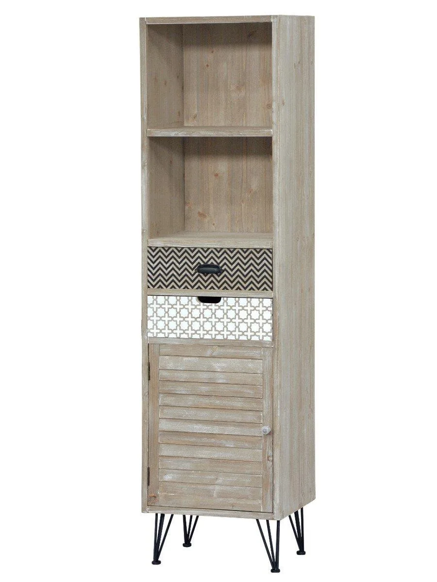 Loano LO02 raamaturiiul kodukontorisse. See retrostiilis riiul on valmistatud Paulownia puidust ja MDF-ist, millele lisavad elegantsi mustad metallist jalad. Lihtne disain on rikastatud kaunite ustega, mustade metallist käepidemetega ja sahtlite esipaneelidega, mis on kaunistatud mustriga. See sobib ideaalselt teie kodukontorisse, pakkudes ruumi raamatute ja dekoratiivesemete jaoks.