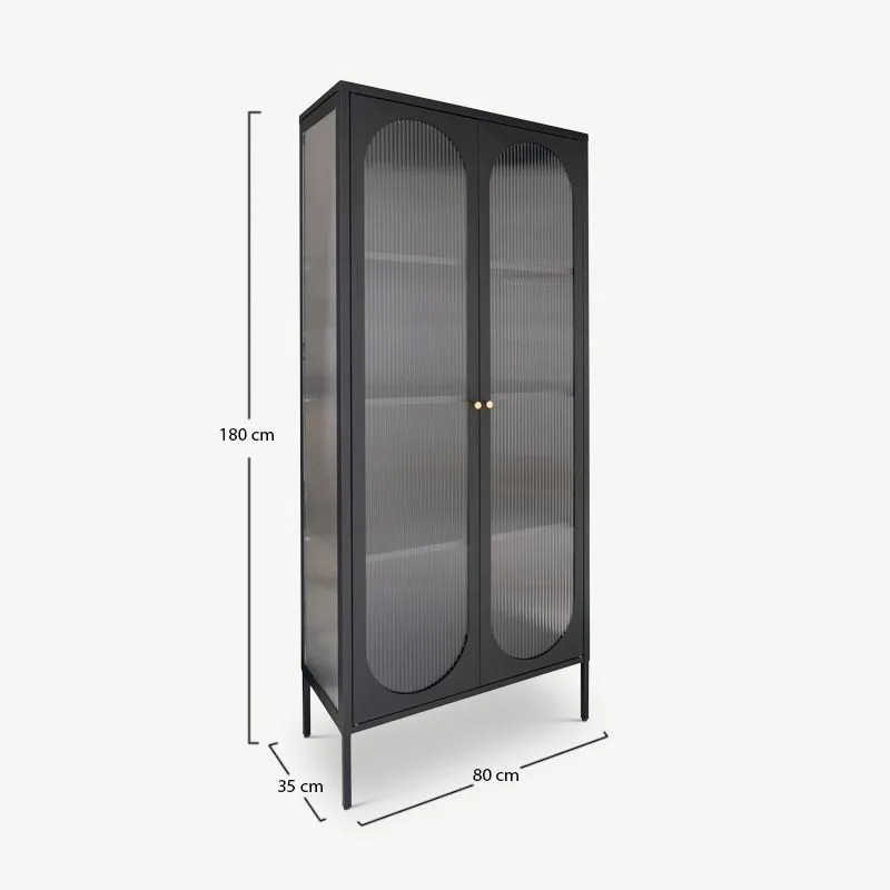Mõõtudega kõrgus 180 cm, laius 35 cm ja sügavus 80 cm on see metallist vitriinkapp suurepärane valik neile, kes soovivad üheskoos eksponeerida ja hoida oma lemmikesemeid organiseeritult. Tänu oma kõrgusele ja avaratele riiulitele pakub see piisavalt ruumi nii dekoratiivesemetele kui ka raamatutele või nõudele.