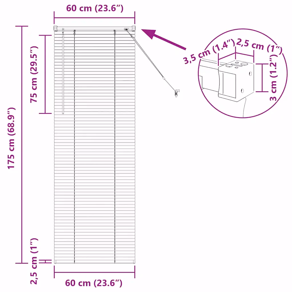 Veneetsia ruloo on mõeldud paigaldamiseks aknaraami sisse. Enne paigaldamist mõõda aknaava, et veenduda, et mõõtmed 175 x 60 cm sobivad. Kinnita kinnitusklambrid vastavalt kaasasolevale juhendile, riputa ruloo paika ning ühenda tõmbejuhe ja lamellide pööramismehhanism. Ohutuse tagamiseks kinnita nöör seina külge mõeldud ohutusklipiga ja veendu, et purunemisseade oleks õigesti paigaldatud. Ruloo kasutamine on lihtne – tõmbnööri abil saad seda üles ja alla liigutada ning lamellide pööramisega valgust ja privaatsust reguleerida.
