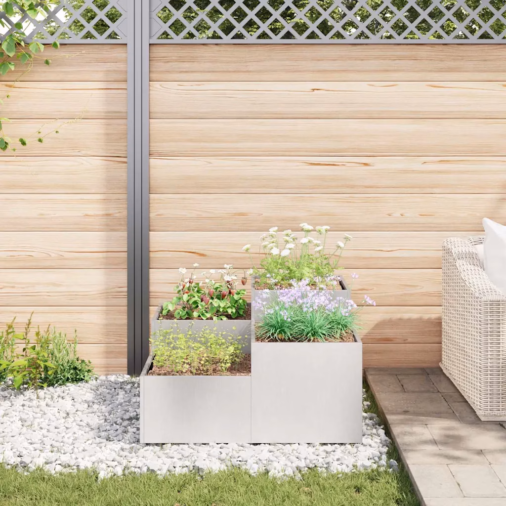 See hõbedane roostevabast terasest aiataimekast sobib hästi, kui otsid lahendust, mis ühendab puhta väljanägemise ja praktilise kasutuse. Avatud põhi ja UV-kindel viimistlus toetavad taimede tervet kasvu ning muudavad hoolduse lihtsaks. 80 x 80 x 48 cm mõõtmetega kast aitab luua selgelt piiritletud istutusala, ilma et peaksid rajama püsivaid peenraid, mistõttu sobib see hästi nii koduaeda, terrassile kui ka väiksematele välialadele.