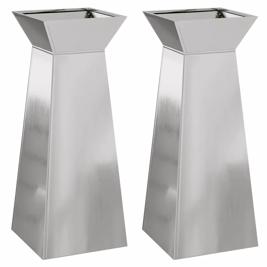 • 2 x hõbedane sambakujuline istutuskast mõõtmetega 40 x 40 x 101 cm (pikkus x laius x kõrgus)