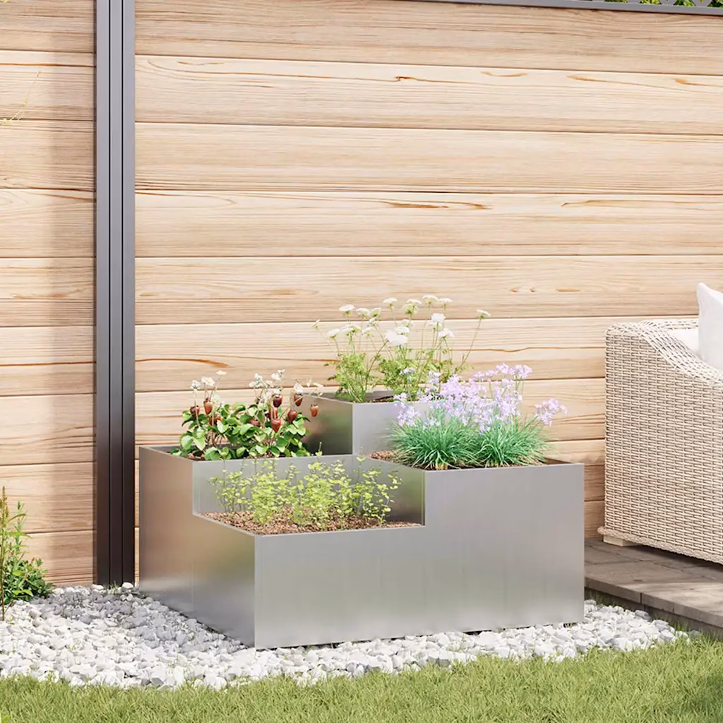 Tsingitud terasest istutuskast korrastatud ja kaasaegsele aiale