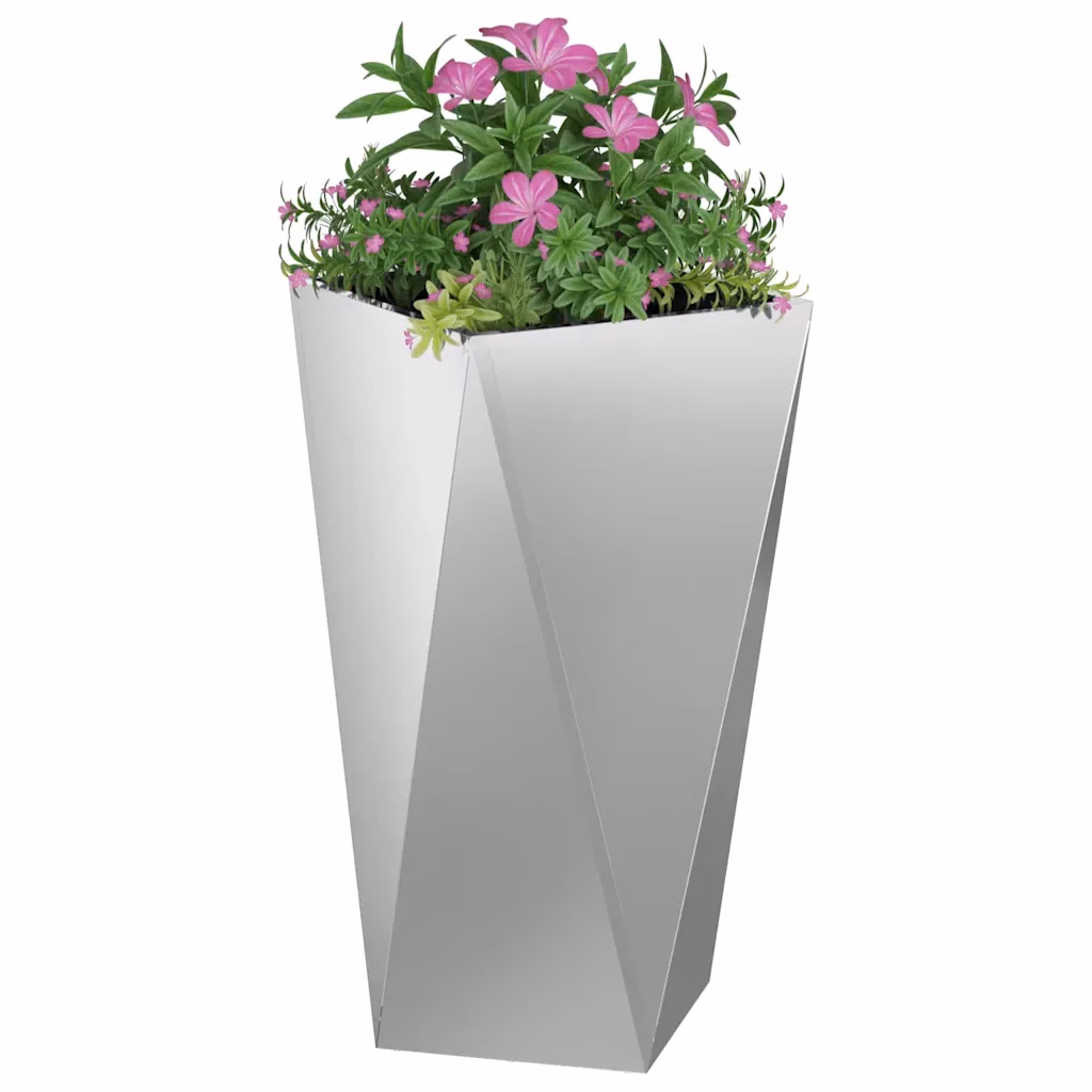 See hõbedane taimekast on loodud koduaia, terrassi või rõdu roheluse efektseks esitlemiseks. Tsingitud terasest konstruktsioon on tugev ja vastupidav, sobides hästi välistingimustesse ning pakkudes taimedele stabiilset kasvukohta. Kaasaegne, geomeetriline kuju loob pilkupüüdva aktsendi nii eraaias kui ka muus väliruumis.