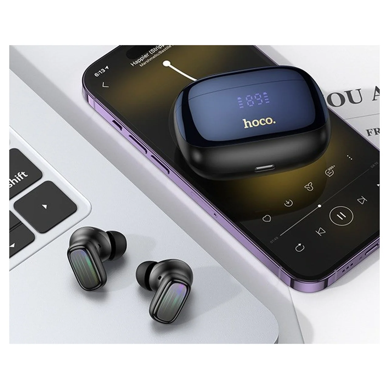 Hoco EQ20 Rhyme on mugavad ja kerged juhtmevabad musta värvi in-ear kõrvaklapid, mis sobivad ideaalselt igapäevaseks kasutamiseks nii kõnede kui muusika kuulamiseks. Kõrge ühenduskiirus, stabiilsus ja aktiivne mürasummutus pakuvad suurepärast kasutajakogemust nii kontoris, kodus kui ka linnamelus liikudes. Pakendis on laadimiskarp, mis võimaldab kiiret ja mugavat laadimist, ning LED-ekraanilt saab visuaalselt jälgida aku taset.