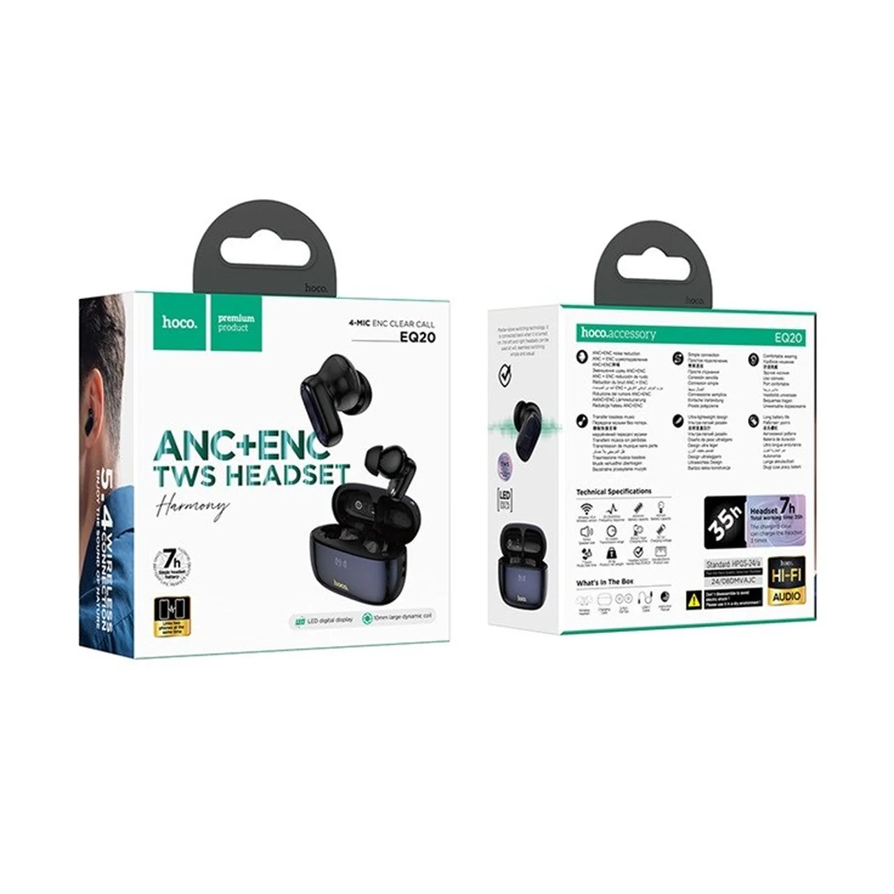 Hoco EQ20 mustad juhtmevabad in-ear kõrvaklapid Bluetooth 5.4 ANC laadimiskarbiga