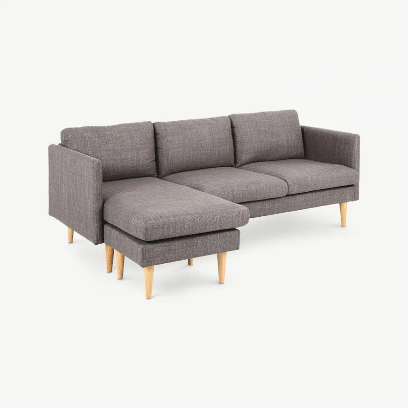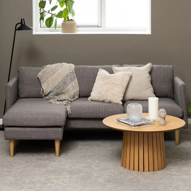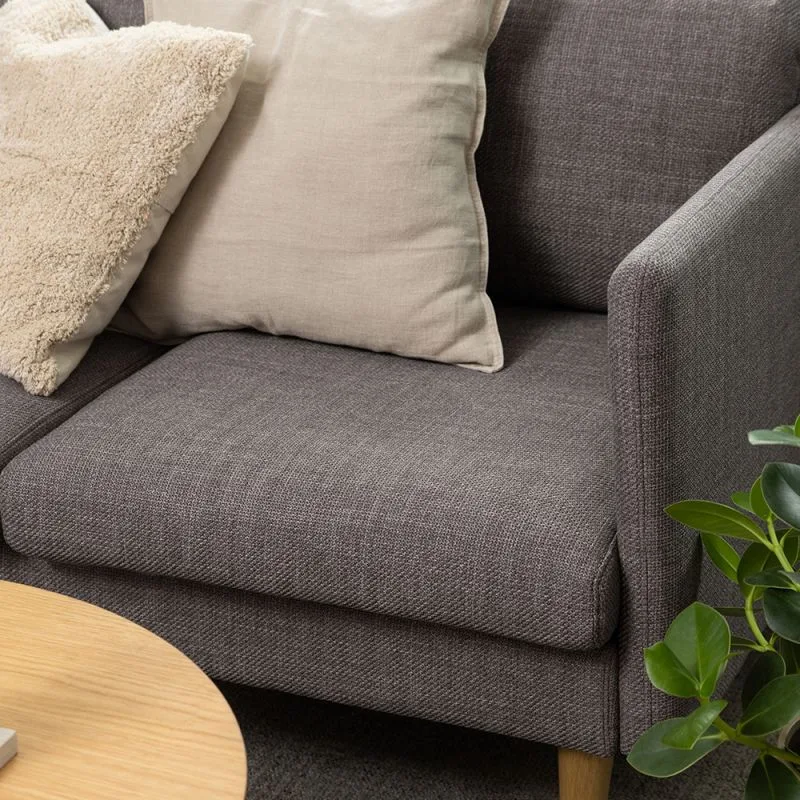 Homie nurgadiivan ühendab endas funktsionaalsuse ja esteetika, tuues esile lihtsad jooned ja neutraalse värvitooni. Selle hall kangas loob rahuliku fooni, mis võimaldab diivanit hõlpsasti kombineerida erinevate sisustuselementidega, alates naturaalsest puidust kohvilaudadest kuni tekstuursete vaipade ja pastellsete padjakateteni.