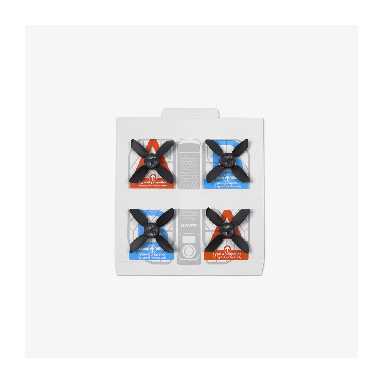 HOVERAir X1 Pro ja ProMax remondikomplekt sisaldab 4 musta propellerit ja 2 kaitseraami technopolümeerist, pakkudes kiiret lahendust drooni hoolduseks ja parandamiseks.