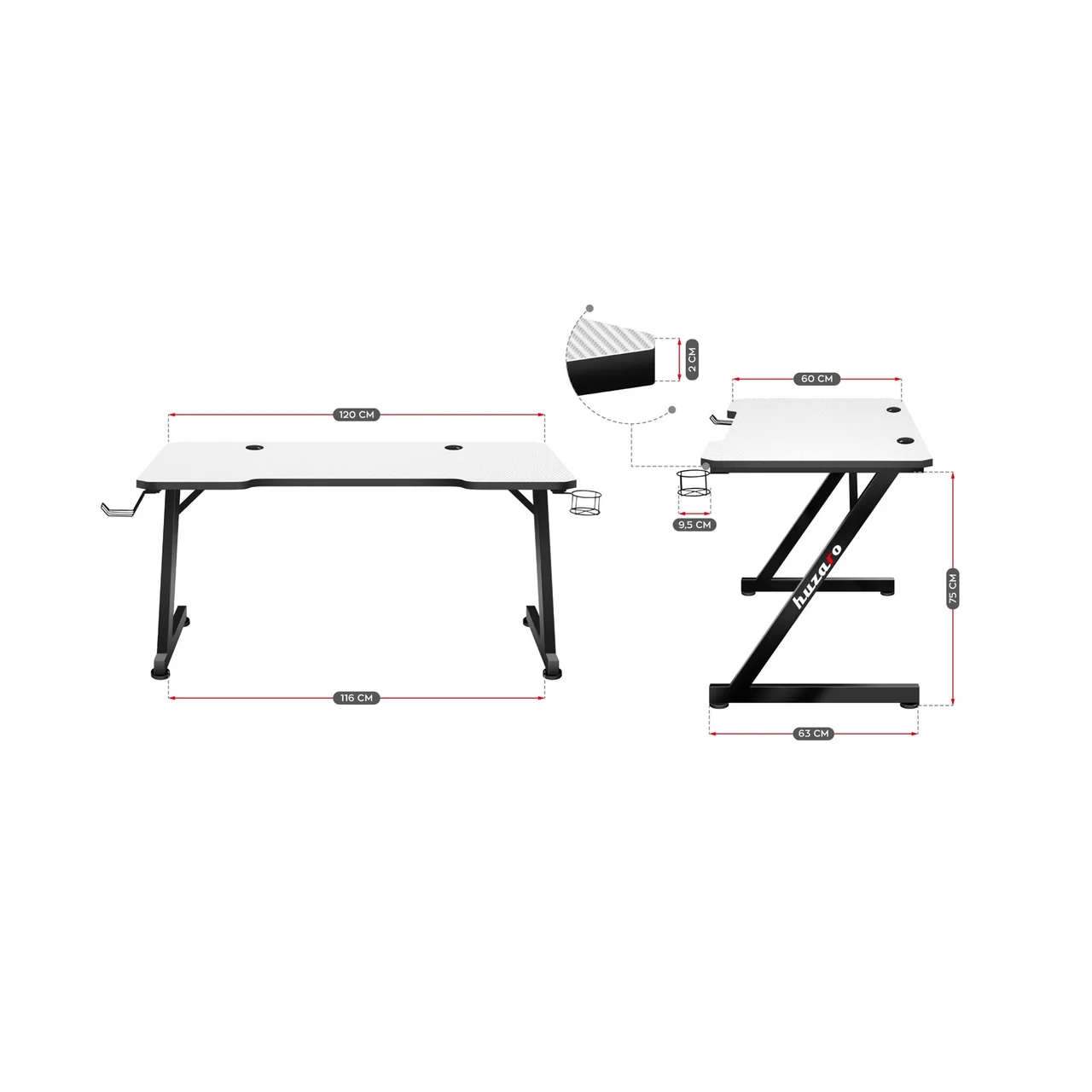Huzaro Hero 2.5 White on professionaalsele mängurile ja kodukontorisse loodud valge HDF-ist lauaplaadiga mängulaud. Laud on varustatud kõikide vajalike mugavustega, et tagada korras töö- või mängiala ning maksimaalne vastupidavus igapäevaseks kasutamiseks. Tugev alumiiniumraam ja lai lauaplaat tagavad stabiilsuse ning funktsionaalsed detailid, nagu klapikonks, topsihoidja ja kaabliavad, teevad igapäevase töö ja mängimise mugavamaks.