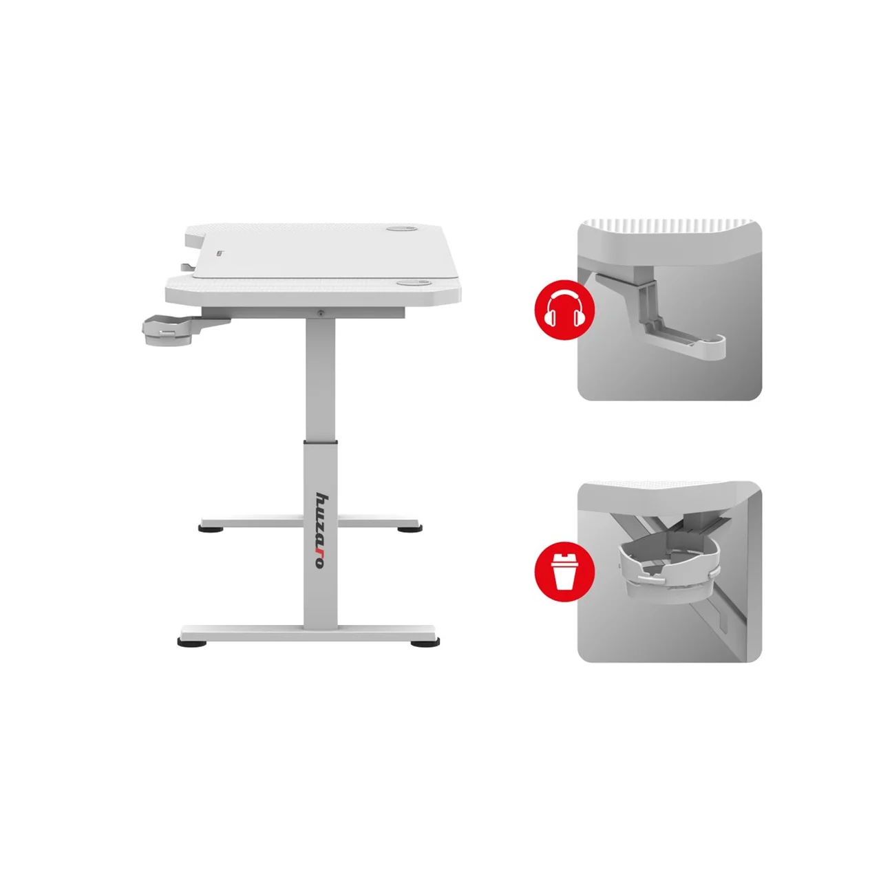Huzaro Hero 2.6 White eristub reguleeritava kõrguse, vastupidava metallraami, praktiliste tarvikute hoidjate ja läbimõeldud juhtmete korraldusvõimalustega. Tänu oma mõõtmetele sobib laud ka kitsamatesse ruumidesse ning sellega on hõlbus luua isiklik mängu- või töökoht. Laud ühildub kõigi tavapäraste arvutikomponentide ja tarvikutega ning sobib kasutamiseks nii ühe kui mitme monitoriga seadistuses.