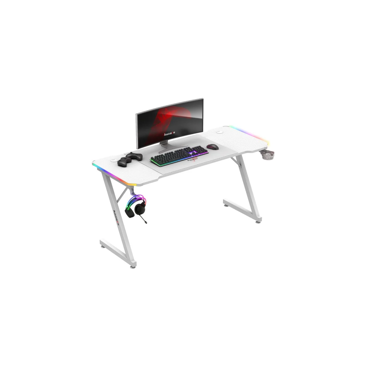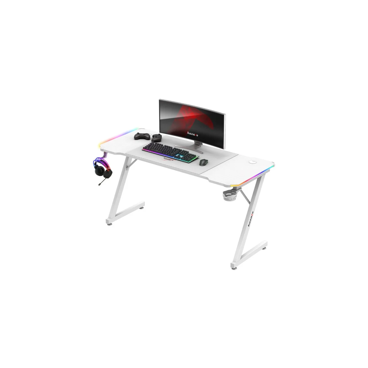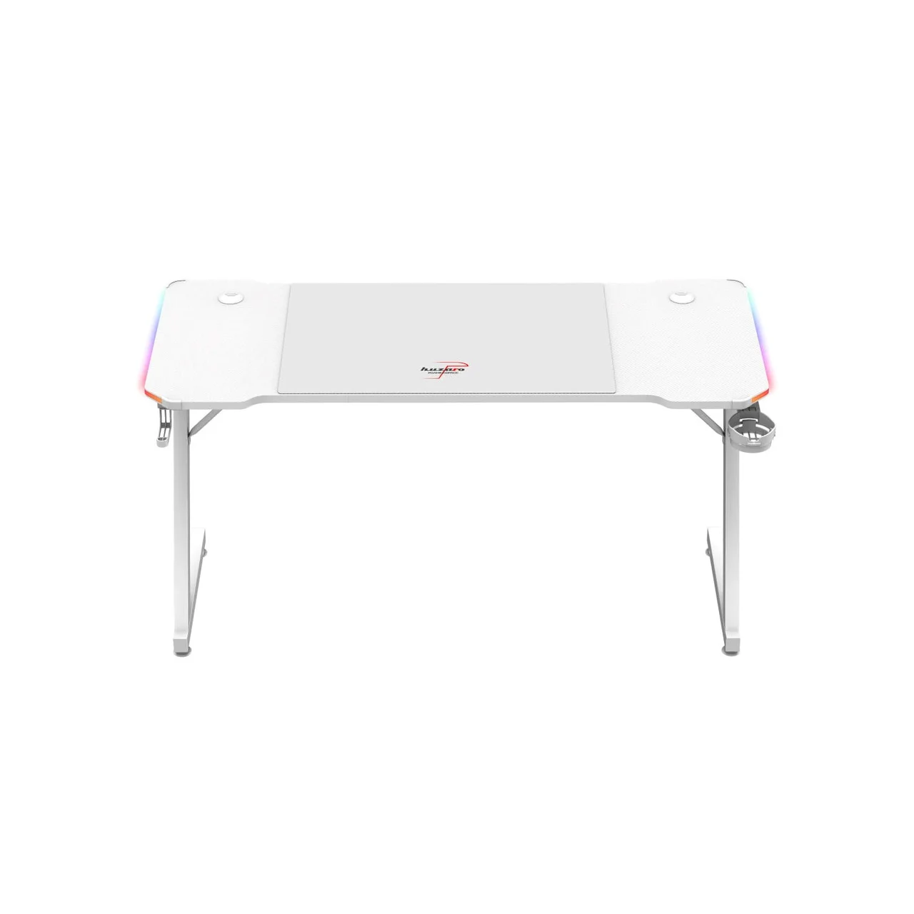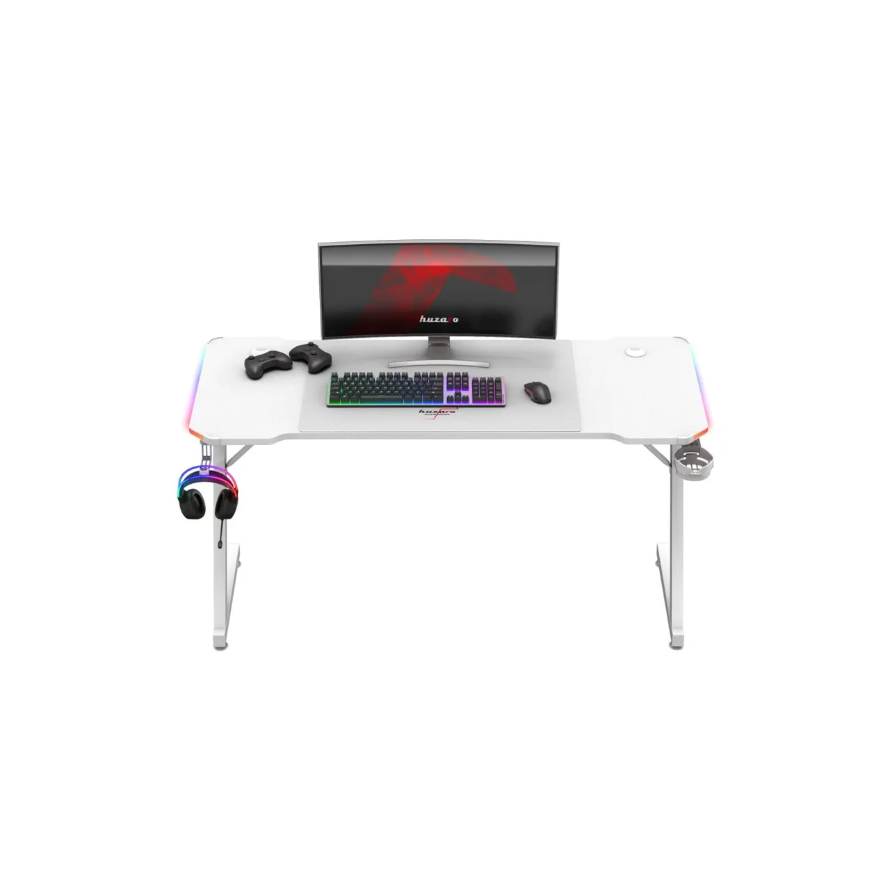Huzaro Hero 3.3 White RGB 140×60 cm valge LED-valgustusega arvutilaud mänguritele ja kodukontorisse