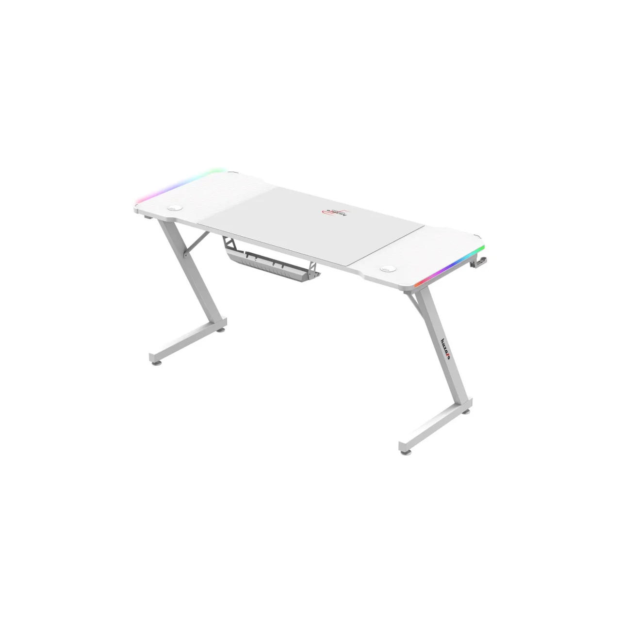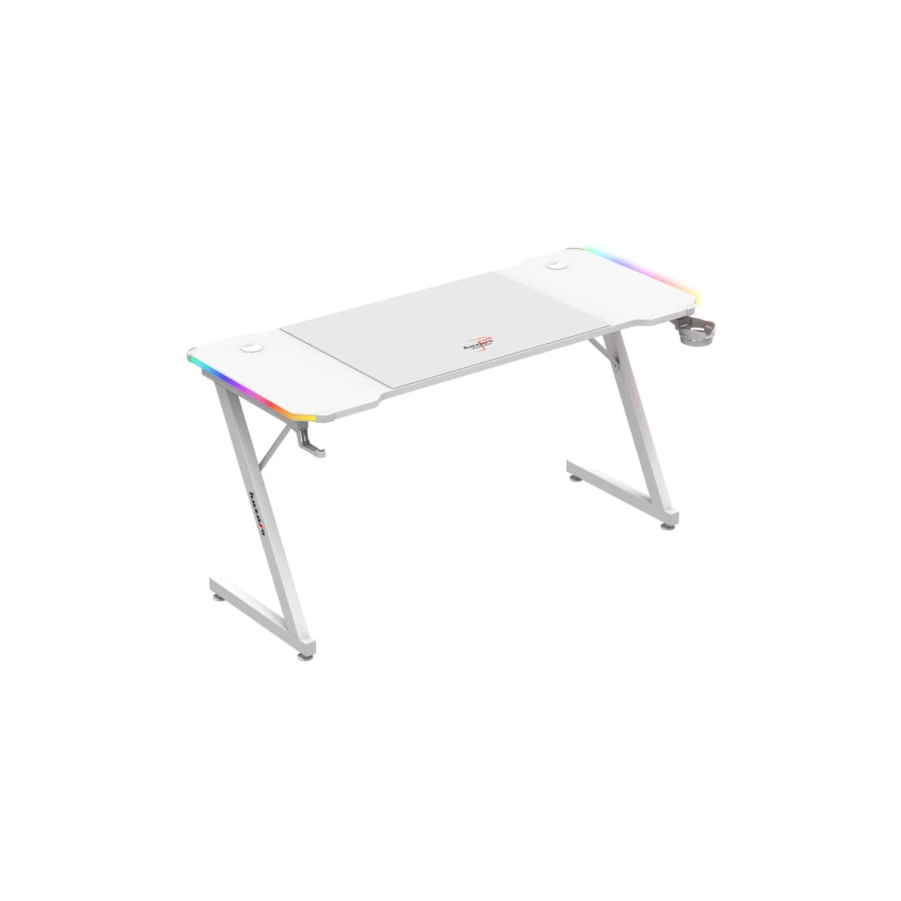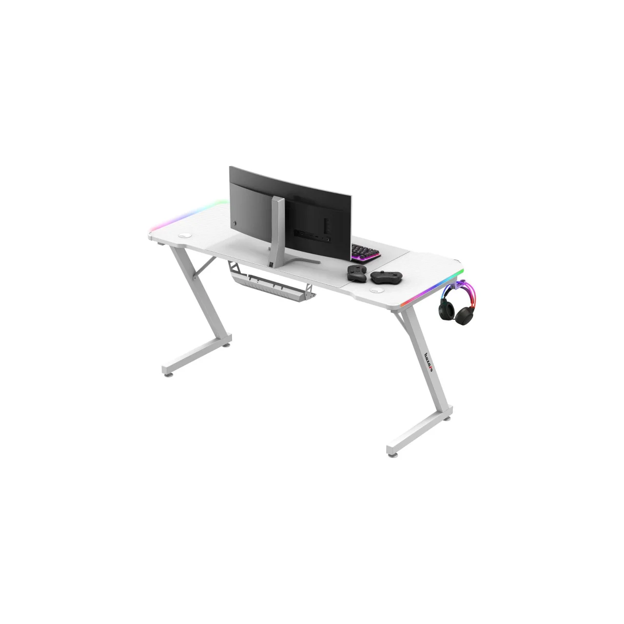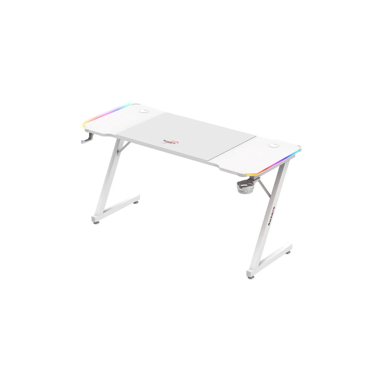 Huzaro Hero 3.3 White RGB 140×60 cm valge LED-valgustusega arvutilaud mänguritele ja kodukontorisse