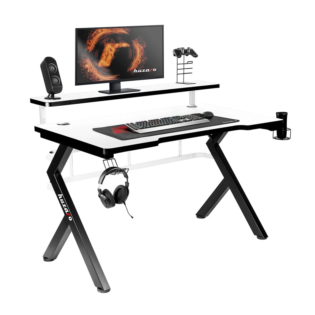 Huzaro Hero 5.0 White 120×60 cm valge süsinikkiust lauaplaadiga alumiiniumraamiga arvutilaud mänguritele ja kodukontorisse