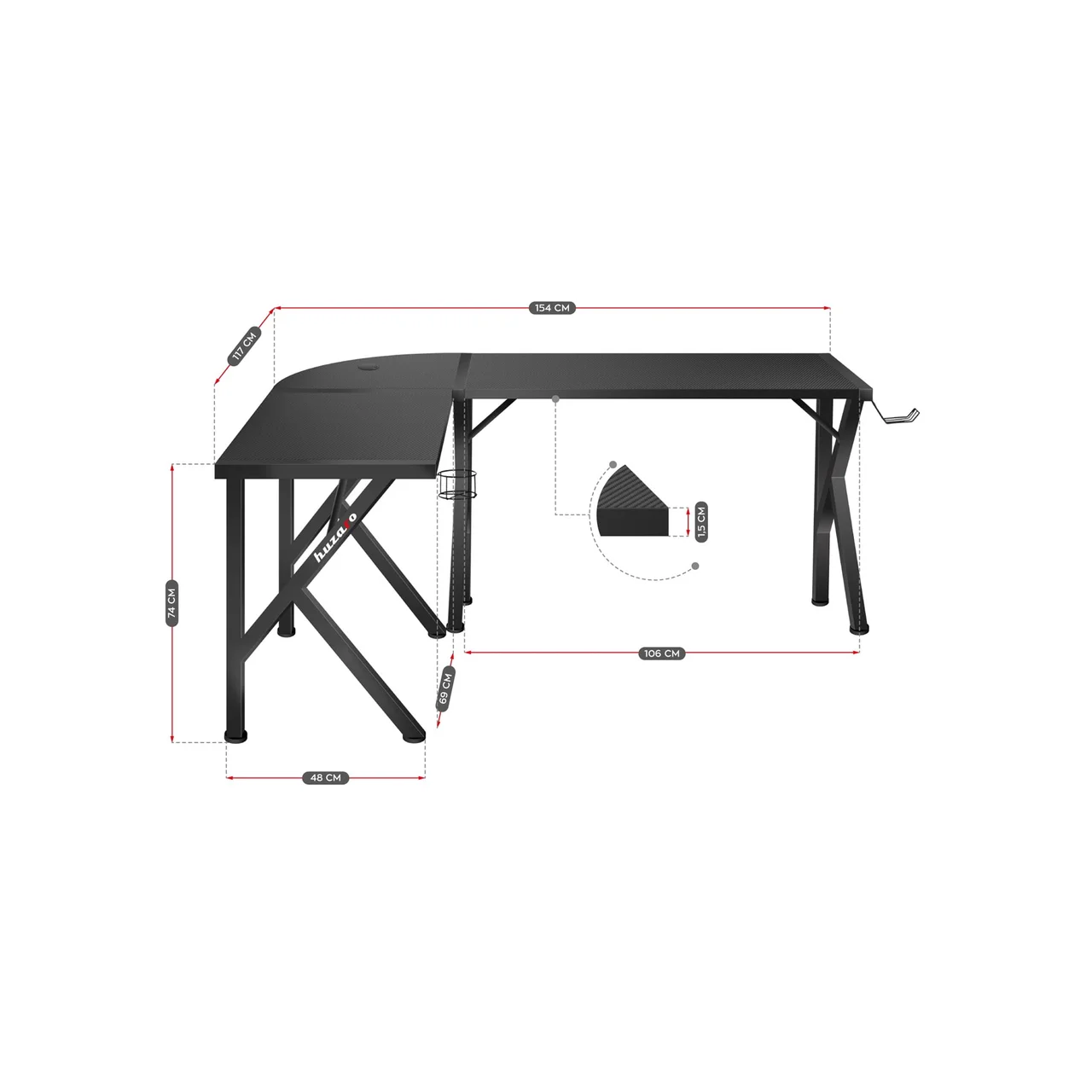 Huzaro Hero 6.3 Black 154x117x74 cm süsinikkiust L-kujuline arvutilaud, terasraam, kaablihaldus, tassihoidja, klapikonks