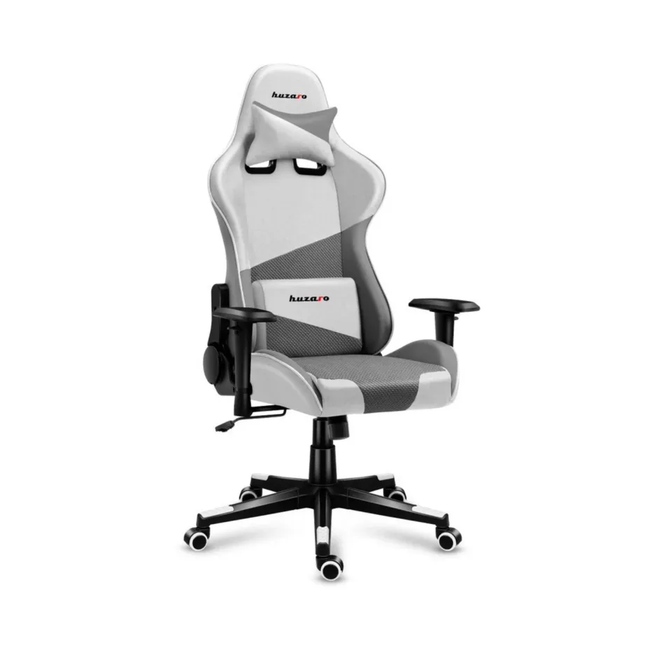Huzaro Force 6.2 valge-hall mänguritool on tugevast terasraamist ja hingavast tekstiilist, reguleeritava seljatoe ning ergonoomiliste patjadega mugav iste kuni 130 kg kasutajale.