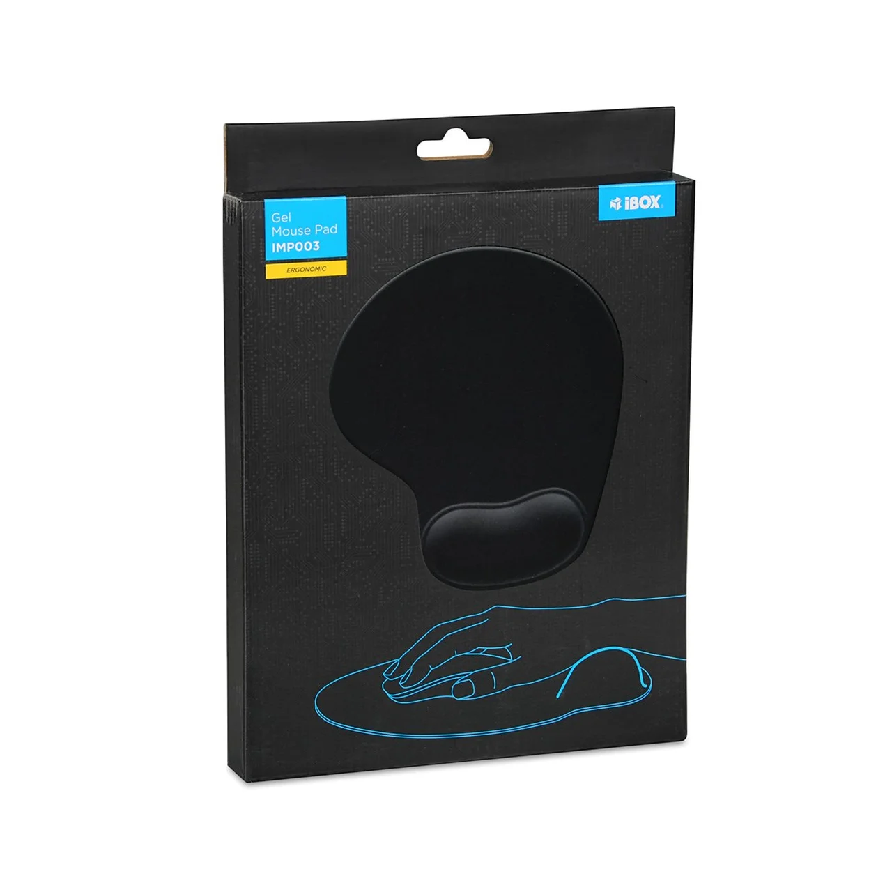 Ergonoomiline iBox must geeliga randmetoega hiirematt tagab mugava ja stabiilse toe randmele, sobides igapäevaseks arvutitööks.