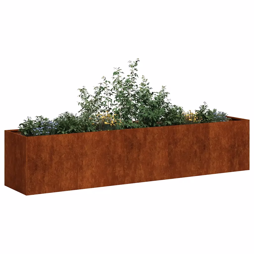 See ilmastikukindlast terasest roostevärvi taimekast on praktiline lahendus aeda, rõdule või terrassile, pakkudes rohkelt ruumi muldadele ja erinevatele taimedele. Suur 200 x 40 x 40 cm maht võimaldab luua mitmekesiseid istutusalasid, samal ajal kui avatud põhjaga konstruktsioon tagab liigse vee äravoolu ja soodustab taimede tervislikku kasvu.