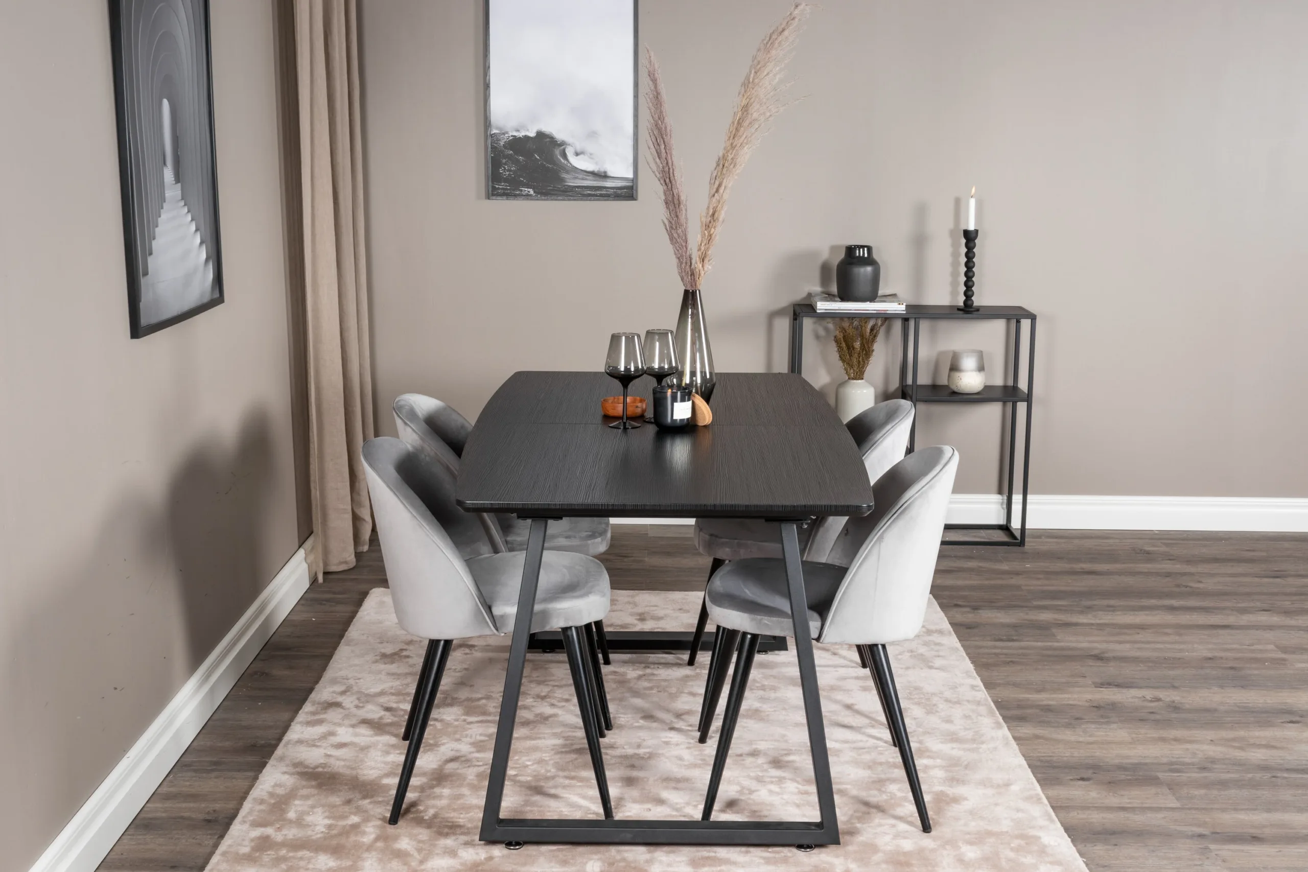 Elegantselt põhjamaist joont järgides on Inca laiendatav söögilauakomplekt ideaalne valik igasse modernsesse interjööri. Komplekti kuulub ruumikas, lihtsalt pikendatav must söögilaud ning neli pehmet, luksuslikku velvettooli helehalli velvetkangaga. See kombinatsioon loob õdusa ning praktilise sööginurga – suurepärane söömiseks nii igapäevaselt kui ka erilisemate sündmuste puhul.