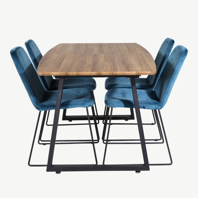 Inca söögikomplekt tammesöögilaua ja siniste toolidega – kaasaegne elegants Sinu koju