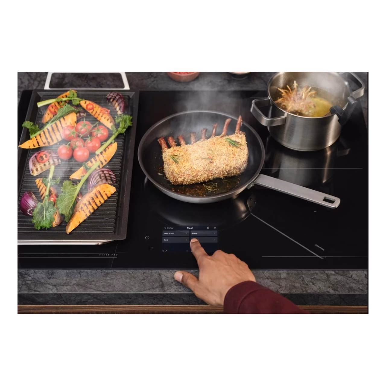 Juhtmevaba SensePro termomeeter suhtleb pliidiplaadiga ja mõõdab toidu temperatuuri otse potis või pannil. Selle põhjal kohandab pliidiplaat automaatselt kuumust, nii et kuumtöötlus oleks ühtlane. Nii on lihtsam valmistada roogasid, kus täpne temperatuur mängib suurt rolli, näiteks õrna kala, kastmeid või madalal kuumusel hautisi.