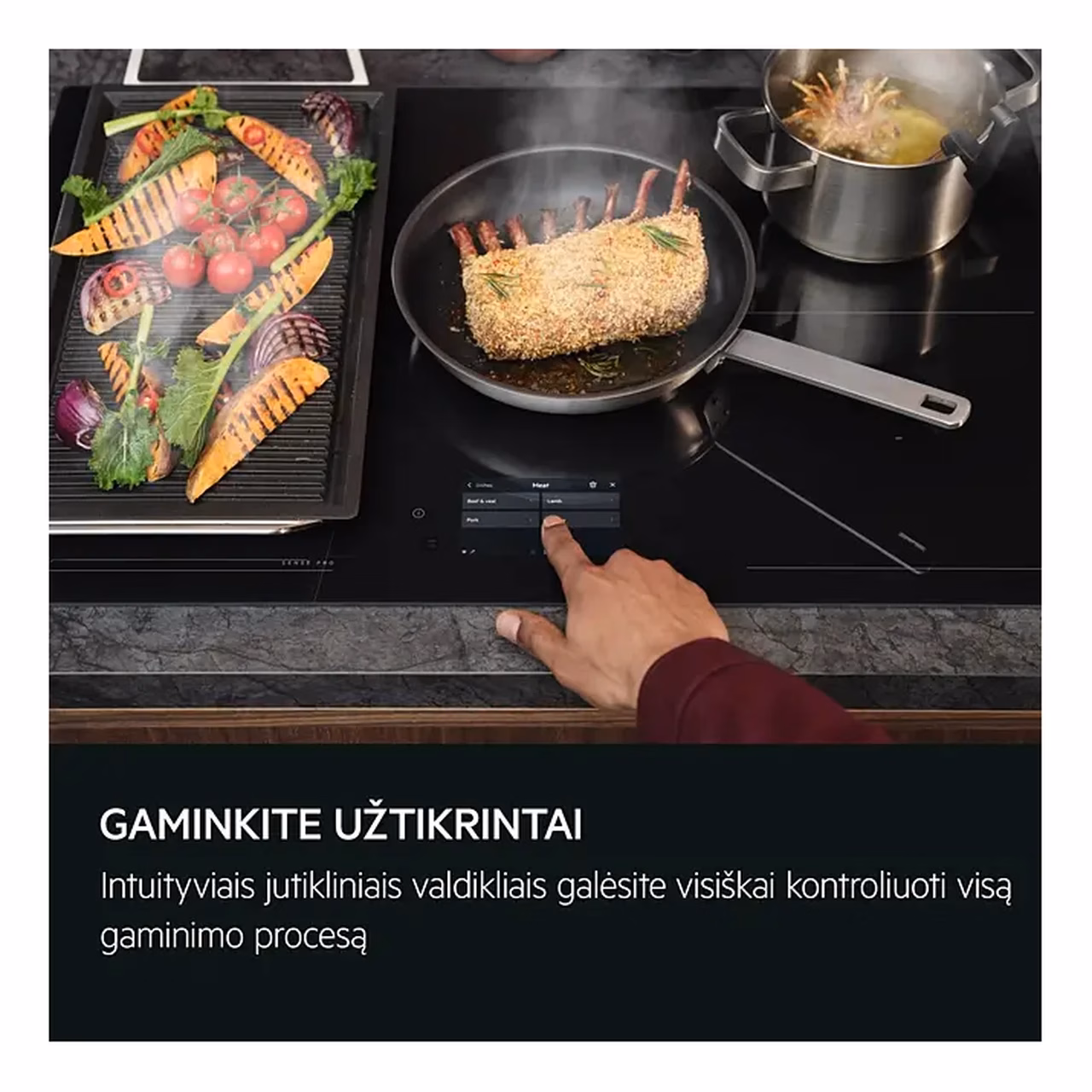 - CookSmart värviline TFT puuteekraan koondab keedutsoonide, temperatuuri ja nutikate funktsioonide juhtimise ühele selgele juhtpinnale.