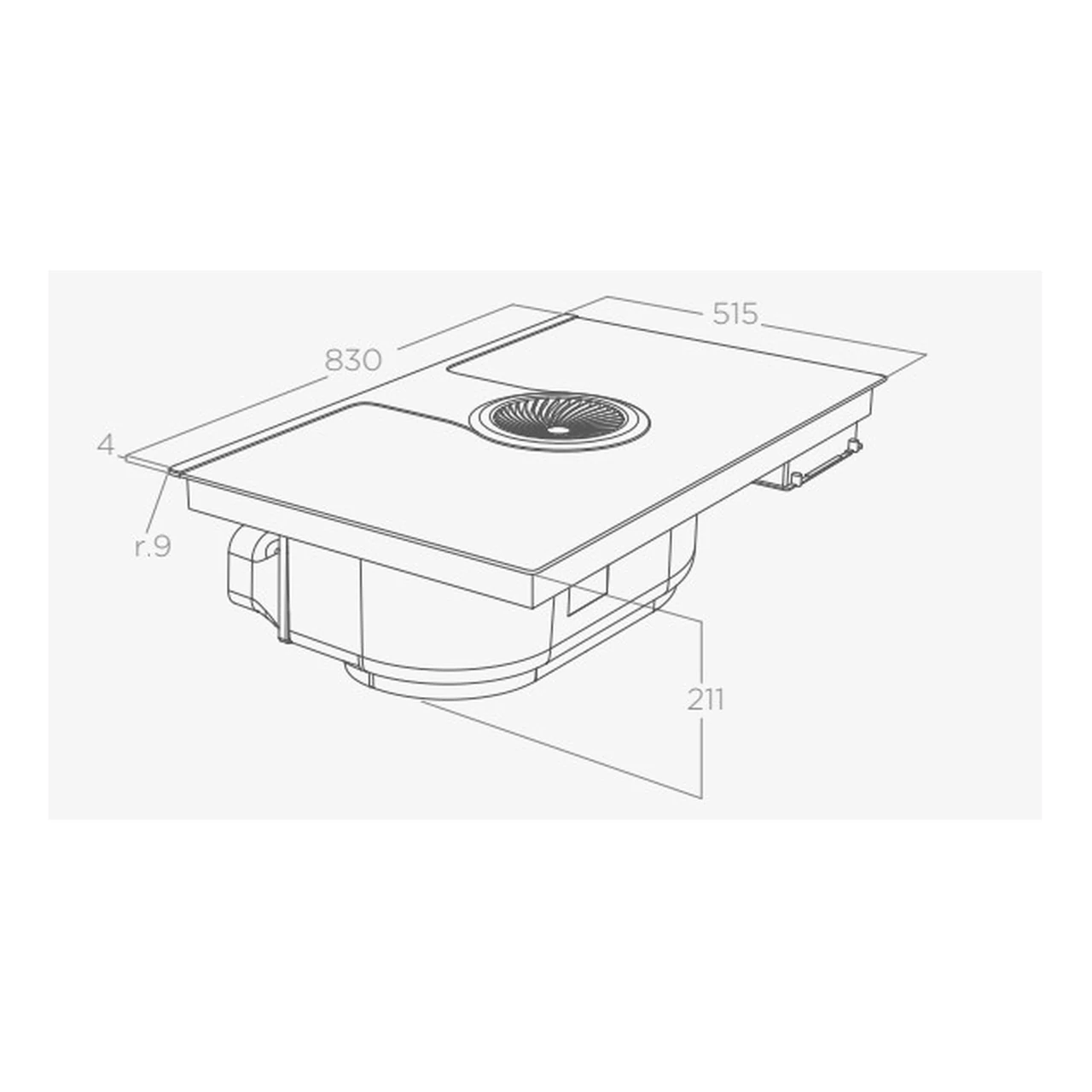 See mudel on mõeldud tööpinda integreerimiseks ja sobib köökidesse, kus on ruumi ligikaudu 83 cm laiusele pliidiplaadile (standardiseeritud laius 90 cm). Õhupuhasti versioon on recirculation / duct out, mis tähendab, et seadet saab kasutada nii õhu tagasiringlusega kui ka väljatõmbena ventilatsioonitorusse. Täpsed väljalõike mõõdud ja ventilatsioonikanali paigutus sõltuvad köögi lahendusest, seetõttu on enne paigaldust oluline tutvuda tootja paigaldusjoonisega või konsulteerida köögipaigaldajaga.