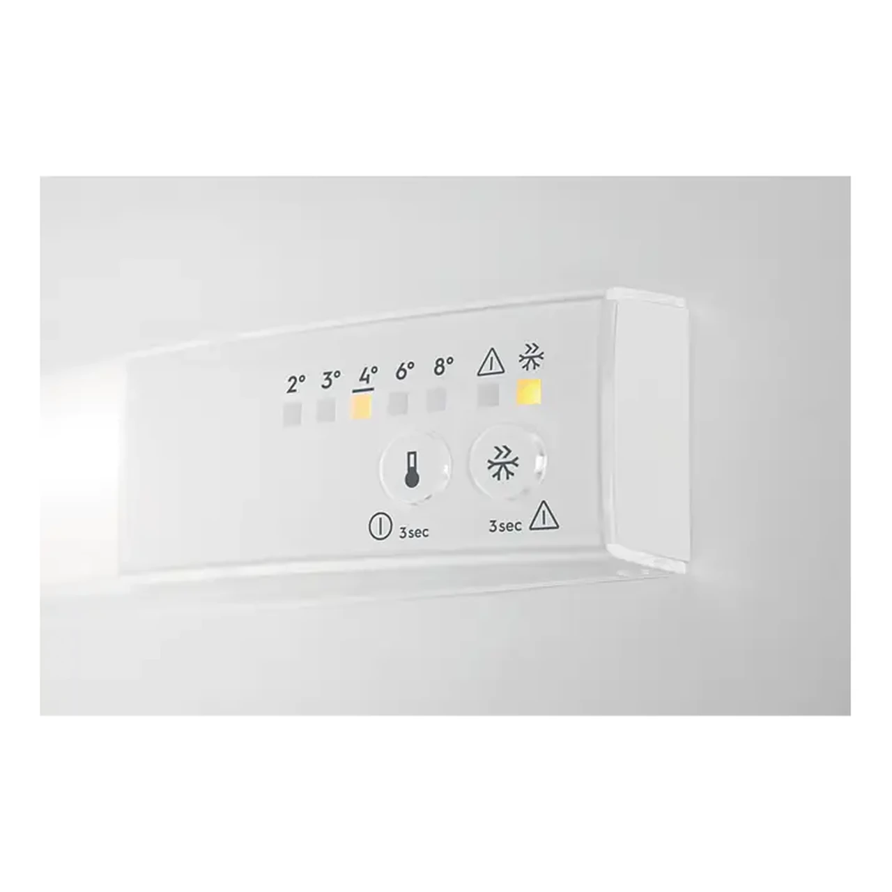 Integreeritav külmik-sügavkülmik ELECTROLUX LNS5LE18S on mõeldud 180 cm köögikappi, pakkudes 198 liitrist külmiku- ja 73 liitrist sügavkülmuruumi väikesele või keskmisele leibkonnale. Nutikas ColdSense temperatuuri juhtimine taastab kiiresti õige temperatuuri pärast ukse avamist, LowFrost vähendab härmatise teket sügavkülmas ning niiskuskontrolliga sahtel hoiab puu- ja köögiviljad kauem värskena. Vaikne 32 dB inverterkompressor ja LED-valgustus tagavad mugava kasutuse igapäevaselt.