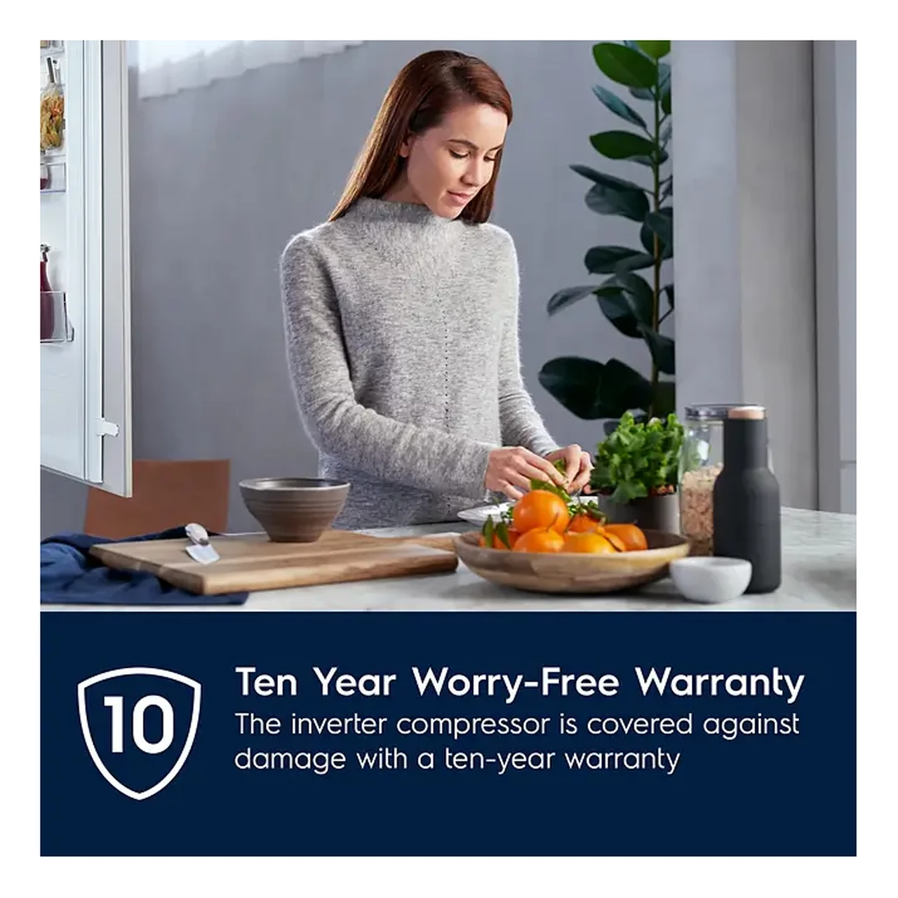 Külmik-sügavkülmiku süda on inverterkompressor, millele tootja pakub 10-aastast garantiid. Garantii hõlmab kompressoriga seotud võimalikke kahjustusi, mis võivad tekkida töö, transpordi, külmaine eemaldamise ja täitmise ning hooldustoimingute käigus. Nii saab seadet kasutada pikalt, teades, et üks olulisemaid komponente on pikaajaliselt kaitstud.