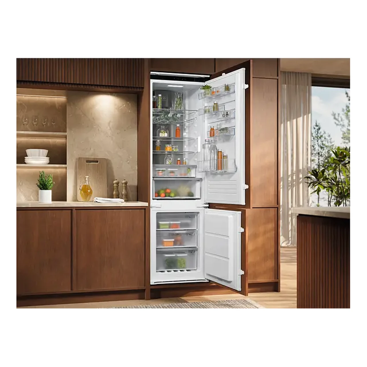 Electrolux E6MNCE19S on 60 cm laiune integreeritav külmik alumise sügavkülmaga, mis on mõeldud ühtlase temperatuuri ja mugava ruumikasutuse tagamiseks sinu köögis. Tänu TwinTech® No Frost kahekordsele jahutusele ja MultiFlow õhuringlusele püsib toit kauem mahlane ning sügavkülm ei vaja käsitsi sulatamist, samal ajal kui vaikne 37 dB töö ja nutikalt jaotatud sisemus sobivad hästi igapäevaseks kasutamiseks.