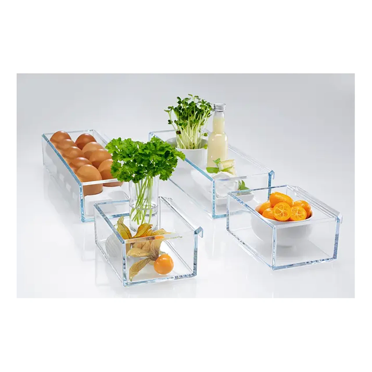 CustomFlex® ukseriiulite süsteem võimaldab sul uste sisemust vastavalt oma harjumustele ümber seadistada. Riiuleid saab kergesti ümber tõsta või eemaldada, et pudelid, kastmed, purgid ja väiksemad pakendid oleksid alati käepärasel kõrgusel. Nii saad ukseruumi paindlikult kohandada ja kasutada külmiku kogumahtu tõhusamalt.