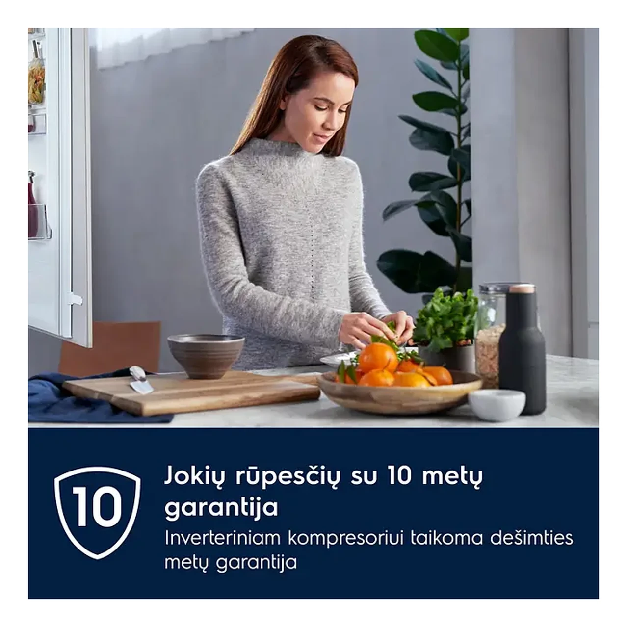 Kui otsid integreeritavat No Frost külmikut mis ühendab suure mahutavuse vaikse töö ja vähese hooldusvajaduse on Electrolux ENS6TE19S praktiline valik. TwinTech No Frost ja DynamicAir hoiavad toidu kauem värskena MultiSpace konstruktsioon pakub rohkem ruumi samas kui inverterkompressor ja 10 aastane kompressorigarantii lisavad kindlustunnet pikemaks ajaks. Tänu läbimõeldud siselahendusele puutetundlikule juhtimisele ja mitmele ohutusfunktsioonile sobib see mudel hästi kaasaegsesse kööki kus väärtustatakse nii funktsionaalsust kui ka ühtset mööblijoont.