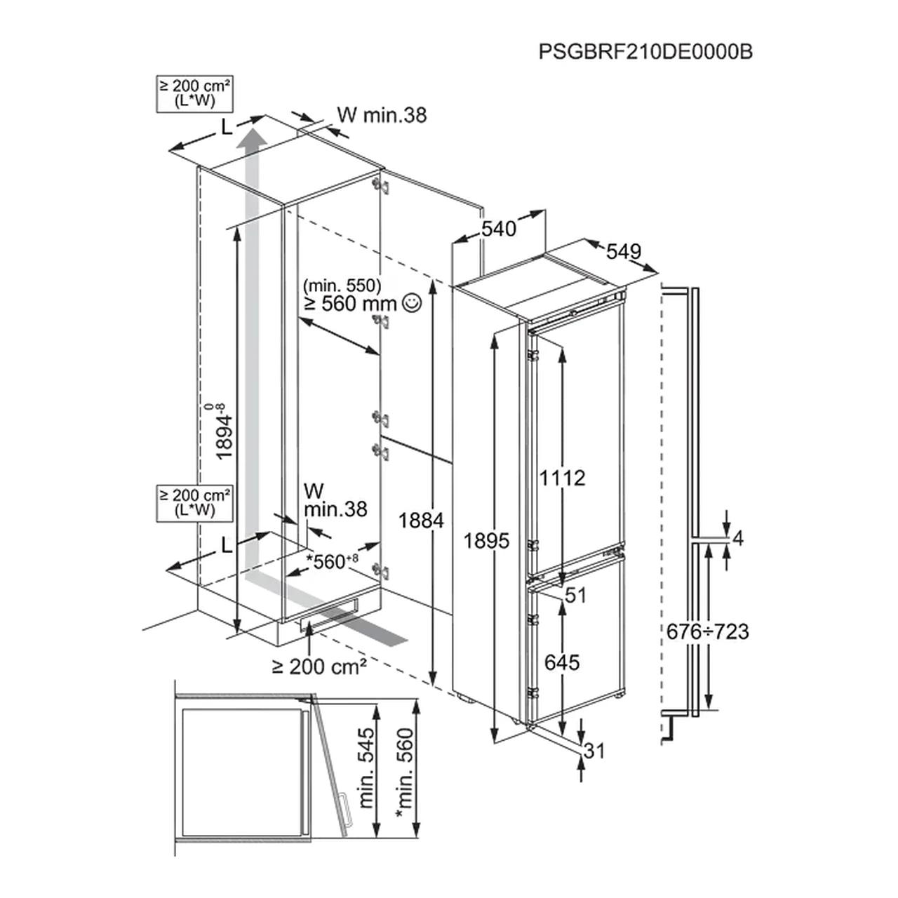 Enne paigaldust mõõda üle köögimööbli kapiava ja võrdle seda külmiku mõõtudega veendumaks et kõrgus laius ja sügavus sobivad ning jääb piisav ventilatsiooniruum vastavalt paigaldusjuhendile. Seade on ette nähtud paigaldamiseks liughingedega mis tähendab et mööbli uks kinnitatakse siinide abil külmiku ukse külge tagades sujuva avamise. Ukse avamissuunda saab muuta tänu ümberpööratavatele ustele mis aitab seadme mugavalt köögipaigutusega kooskõlla viia.