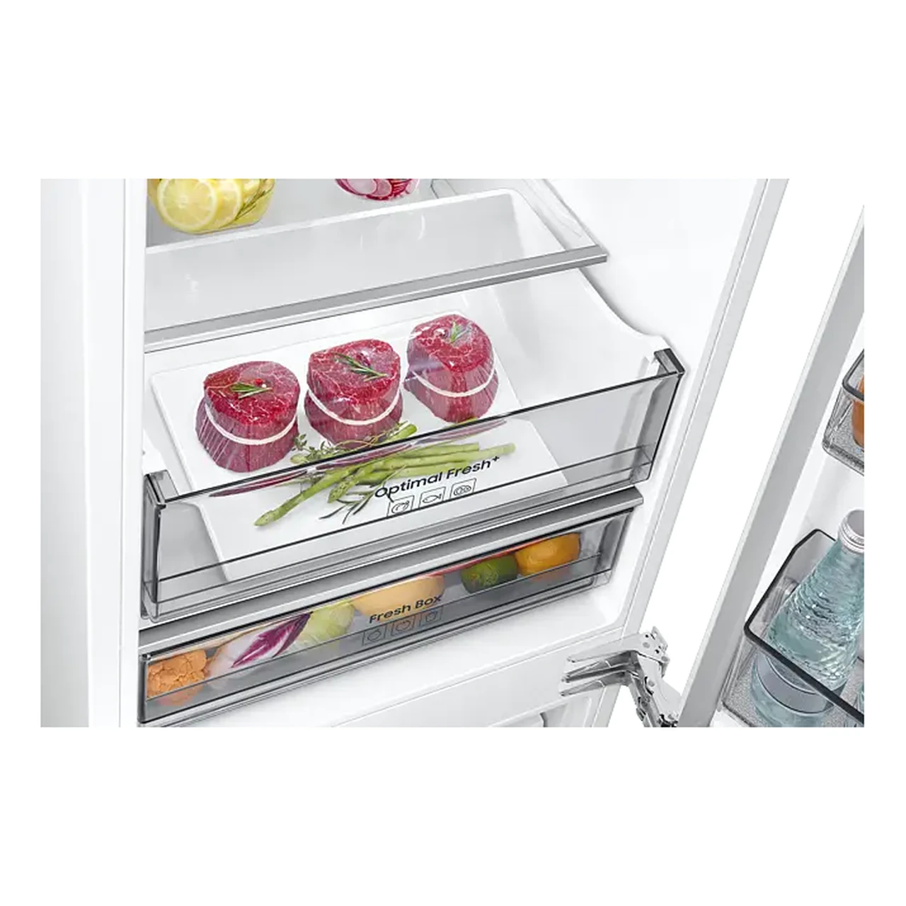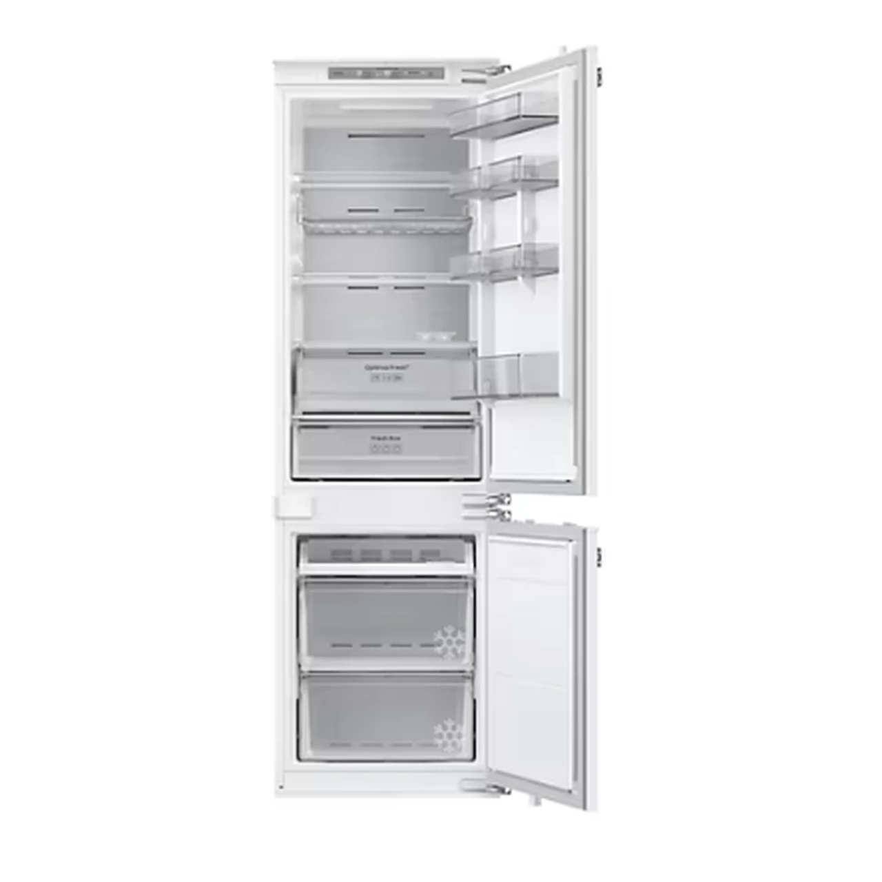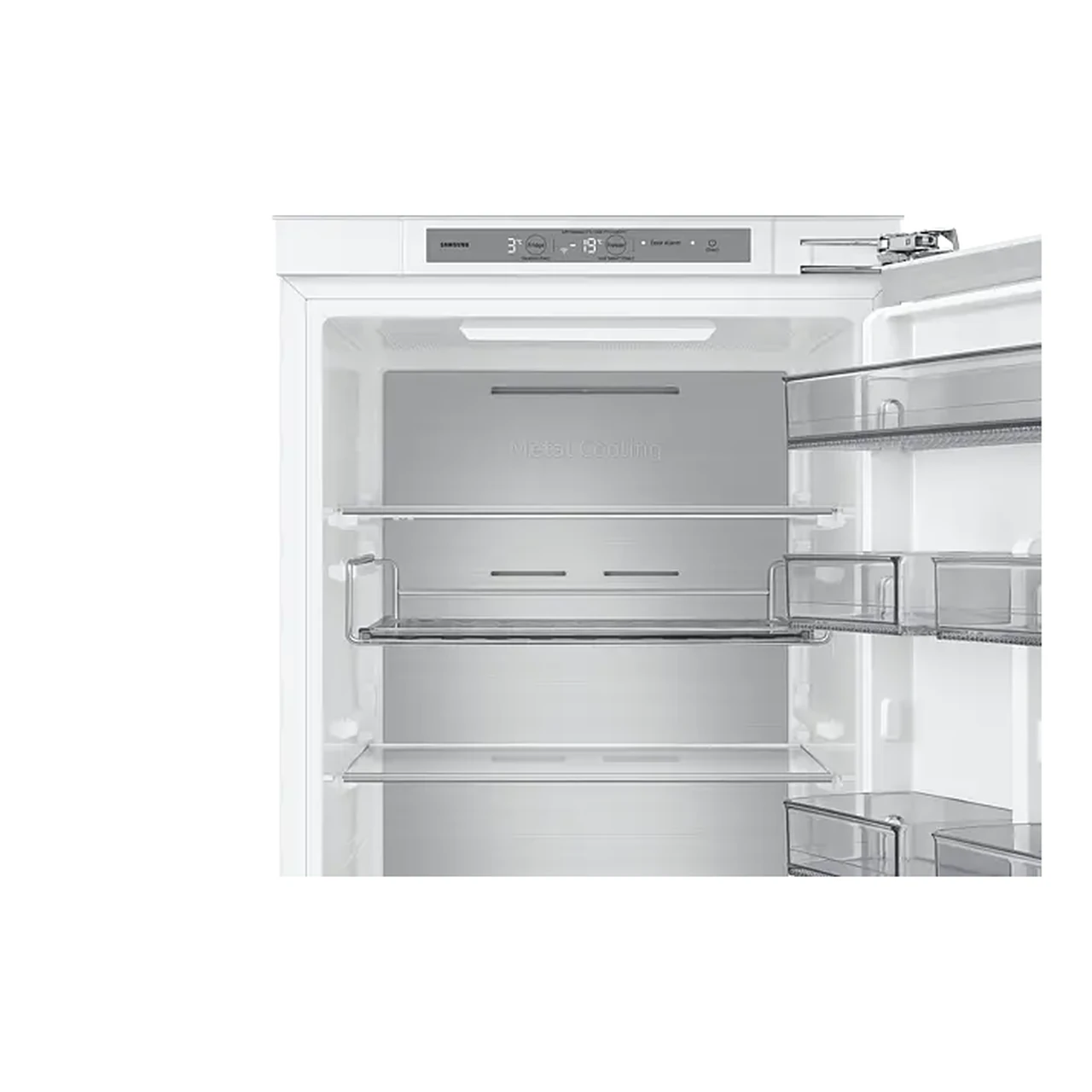 Integreeritav külmik alumise sügavkülmaga sobib 60 cm köögimööbli kappi ning pakub 193 l külmiku ja 74 l sügavkülma mahtu. Twin Cooling™ ja niiskust reguleeritav sahtel hoiavad toidu värskena, No Frost välistab käsitsi ülesulatuse. Wi‑Fi, SmartThings ja Cool Select+ tsoon võimaldavad nutikat temperatuuri juhtimist.
