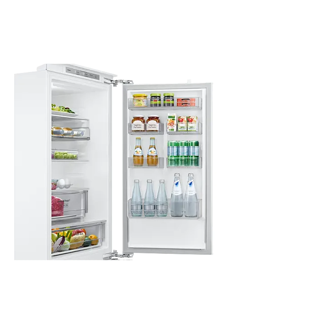Integreeritav külmik alumise sügavkülmaga SAMSUNG BRB80F26ADF0EO on loodud 60 cm laiusesse köögikappi, pakkudes samal ajal avarat 193 liitrilist külmiku- ja 74 liitrilist sügavkülmamahtu. Twin Cooling™ eraldi jahutussüsteem, No Frost tehnoloogia ning niiskust reguleeritavad sahtlid aitavad hoida toiduainete loomulikku maitset ja värskust, vähendades samas hooldusvajadust ja käsitsi ülesulatamist.
