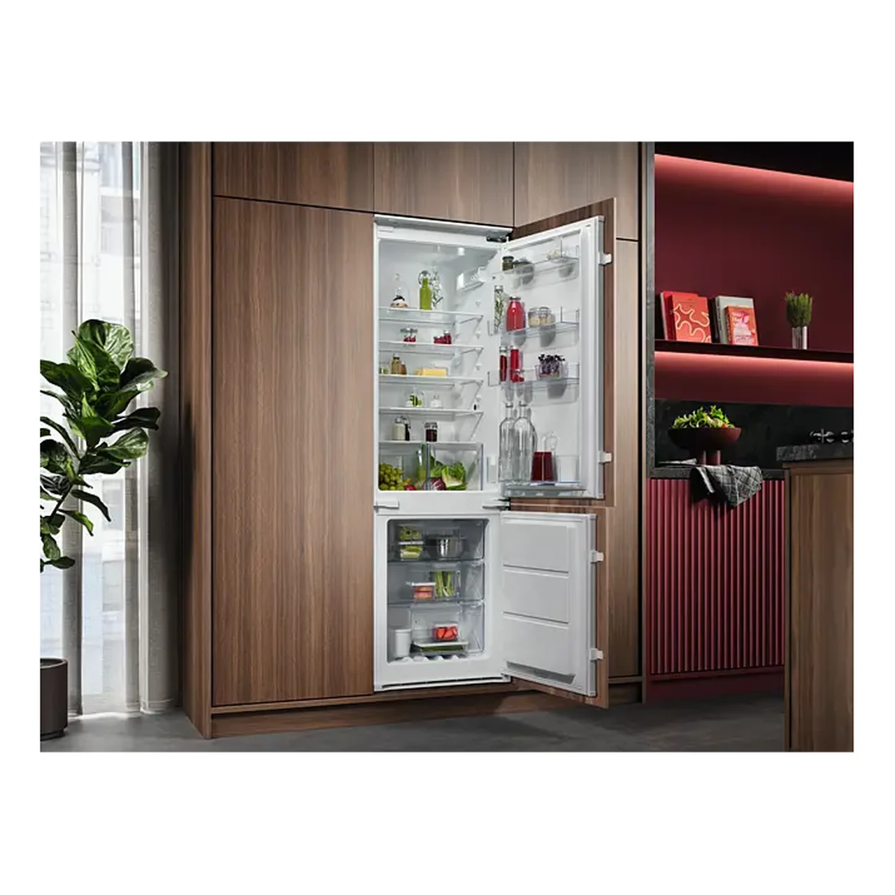 Integreeritav AEG OSC6N181ES külmik-sügavkülmik aitab hoida igapäevased toiduained kauem värskena. Kahe eraldi jahutussüsteemiga TwinTech No Frost hoiab sügavkülma härmatisvabana ning külmikus stabiilse niiskustaseme, nii et köögiviljad, puuviljad ja muud värsked tooted ei kuiva nii kiiresti. 195 liitrine külmik ja 62 liitrine sügavkülmik sobivad hästi väiksemale või keskmisele majapidamisele, jäädes samal ajal mööblisse peidetuna ühtlase köögidisaini osaks.