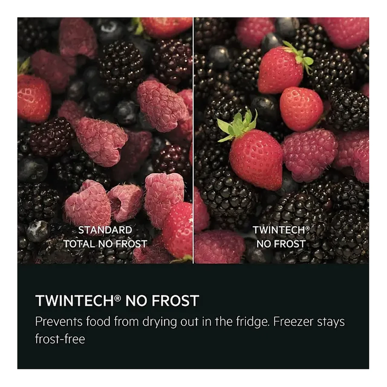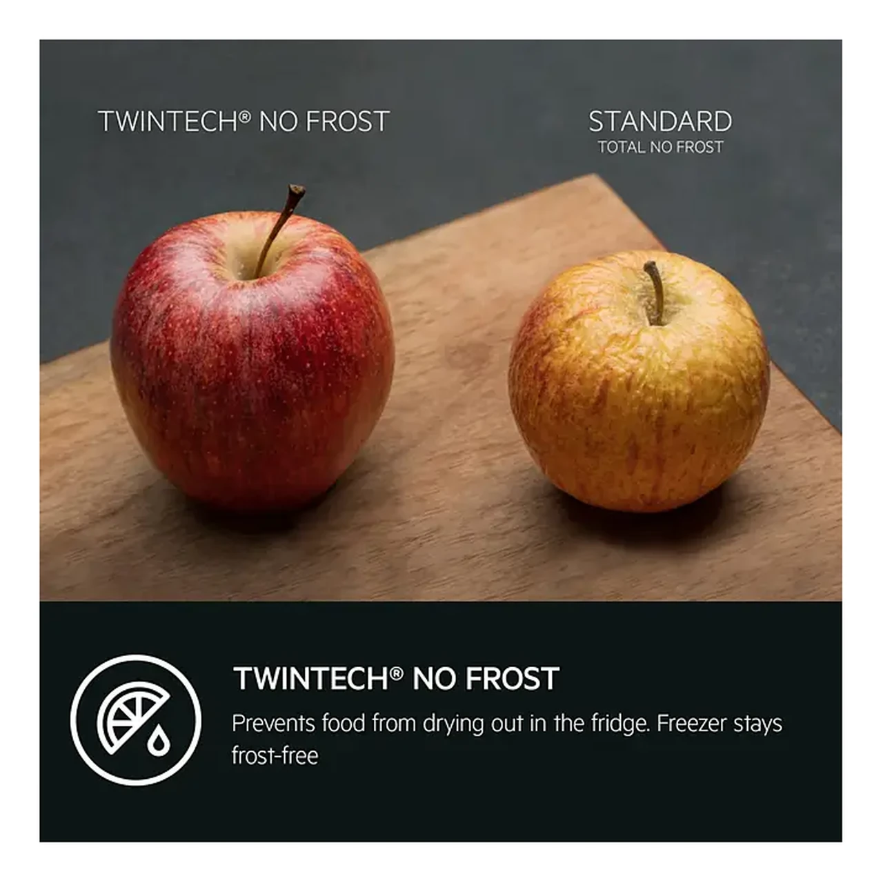 • TwinTech® No Frost topeltjahutus – eraldi õhuringlus külmikus ja sügavkülmas hoiab sügavkülma härmatisvabana ning aitab säilitada külmiku õige niiskustaseme, et toit ei kuivaks.