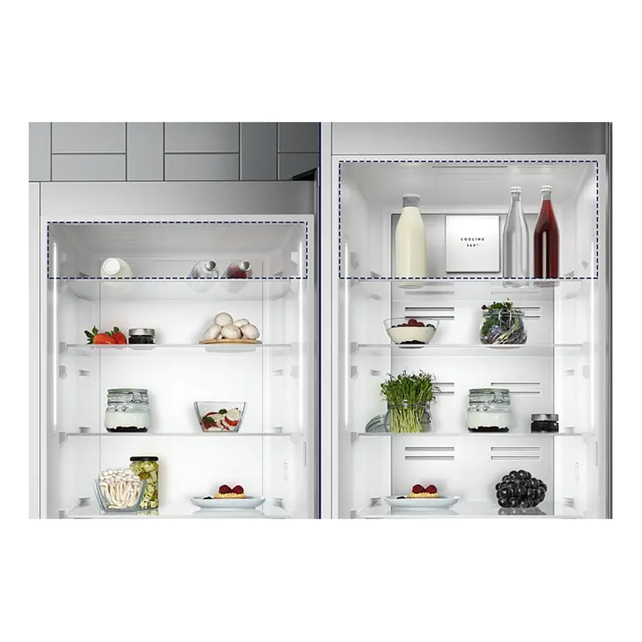MultiSpace lahendusega külmik on veidi tavapärasest kõrgem, pakkudes rohkem sisemahtu igapäevaste ostude jaoks. Külmikuosa mahutab 213 liitrit ja sügavkülm 60 liitrit, mistõttu sobib seade hästi nii väiksemale perele kui ka suuremale tarbimisele. Mitmetasandilised klaasriiulid ja sahtlid aitavad ruumi paindlikult korraldada ning hoida tooted selgelt nähtaval, et vähendada toidu ununemist ja äraviskamist.